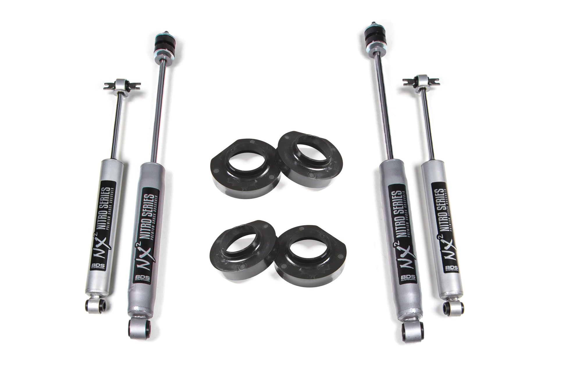 The lift kit includes front and rear 3/4" urethane coil spring spacers, and custom-tuned NX2 Nitro shocks. Give your Jeep TJ the extra boost with this 3/4-inch lift kit from BDS Suspension.