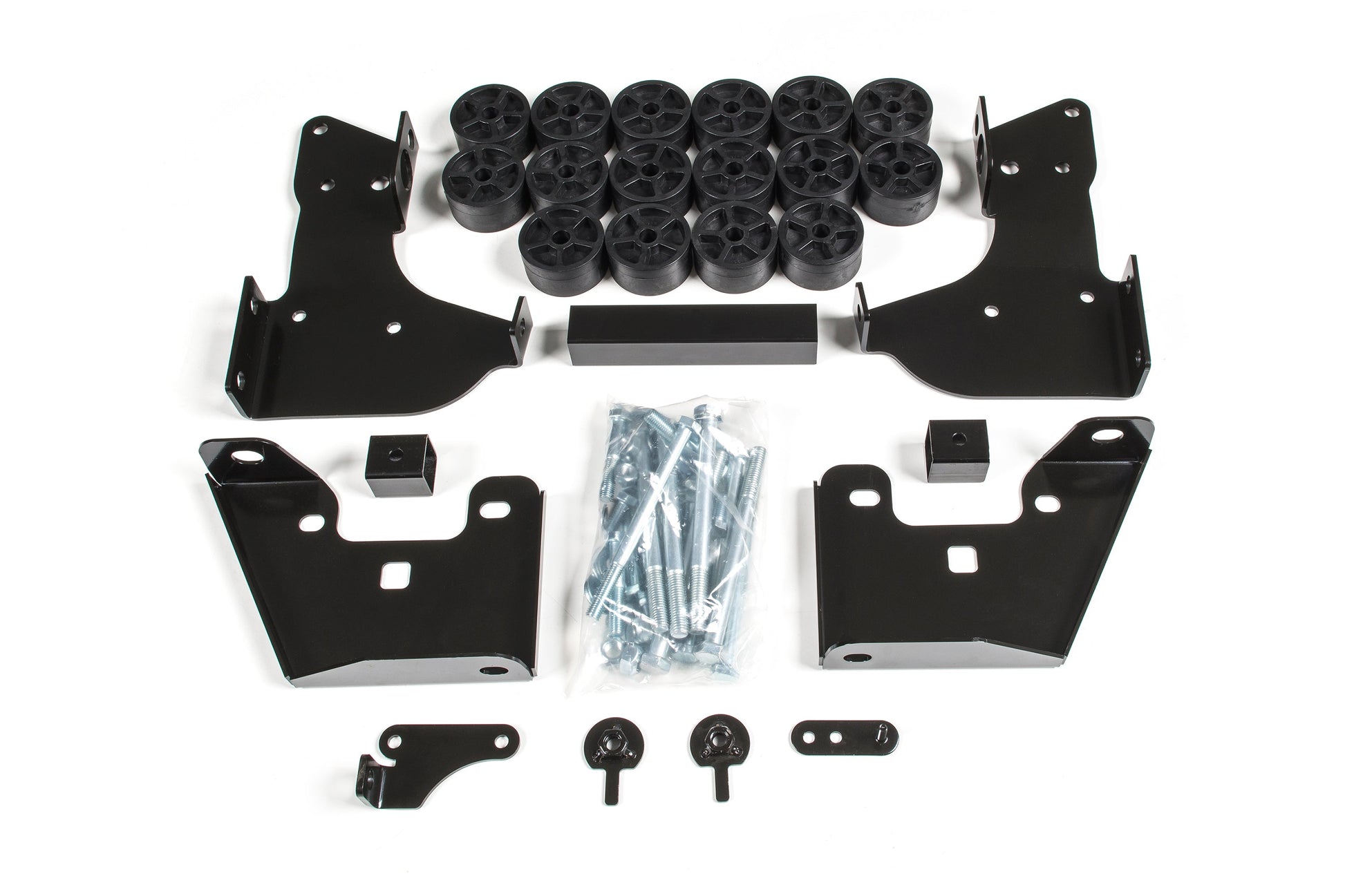 Give your Chevrolet/GMC 1500 truck that extra boost for larger tires while maintain the ride quality and handling characteristics with this 1.5" body lift from Zone Offroad. This kit raises the body and bumpers up off the frame to allow clearance for larger tires while maintaining factory body lines and installing quickly and easily. It includes indestructible body mount blocks, high quality hardware, steering extension, bumper brackets, e-brake relocation, bed support spacers and more.
