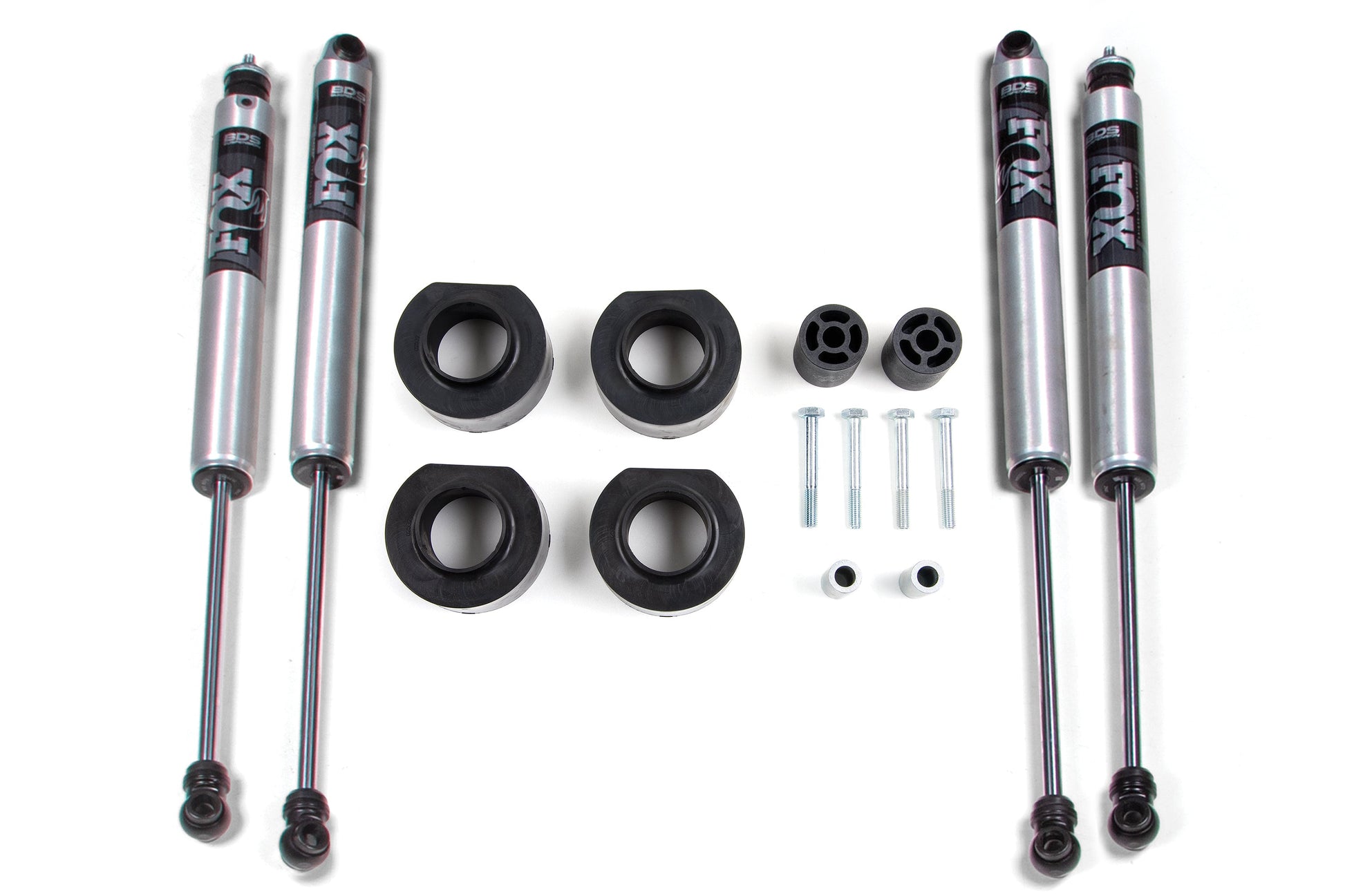 The lift kit includes front and rear 1-3/4" urethane coil spring spacers, front bump stop extensions, and NX2 Nitro or FOX Performance series shocks. Give your Jeep Grand Cherokee the extra height with this 1-3/4 inch lift kit from BDS Suspension.