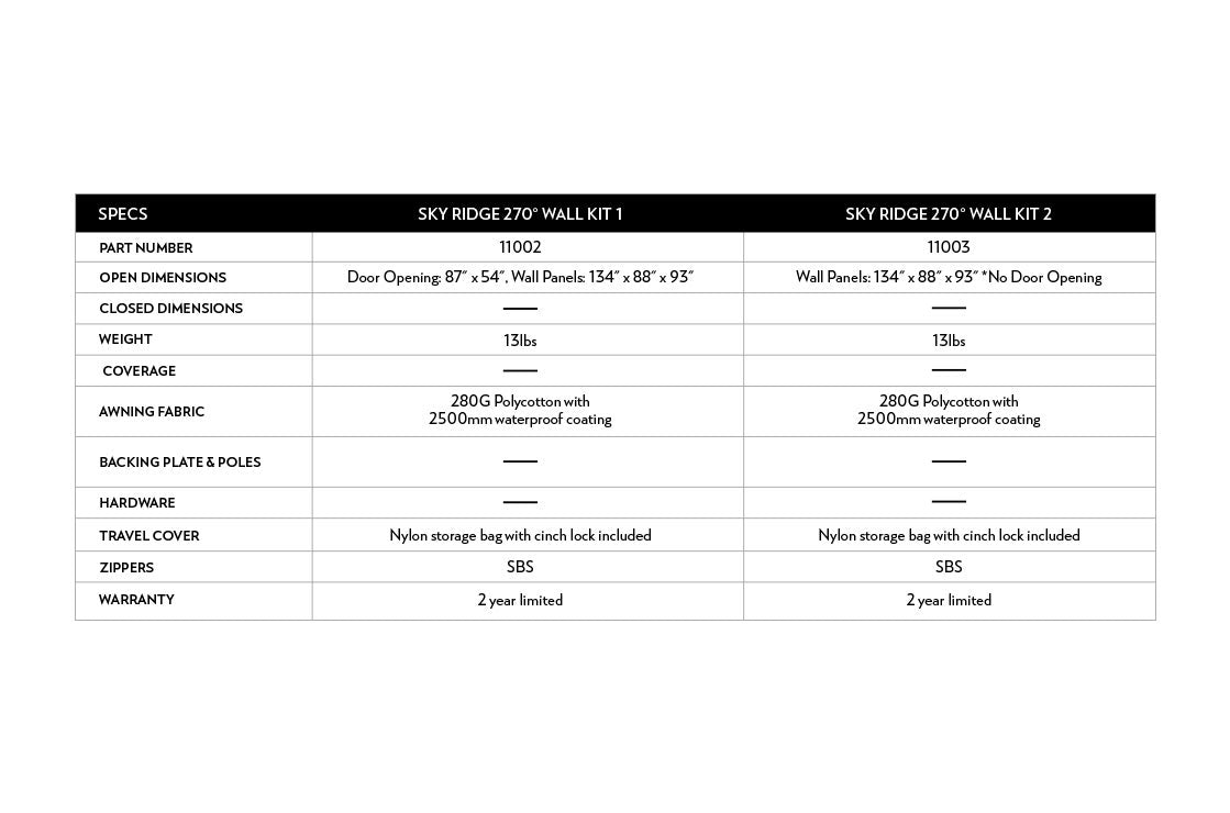 SKY RIDGE 270 AWNING WALL KIT 2 (2 WALLS)