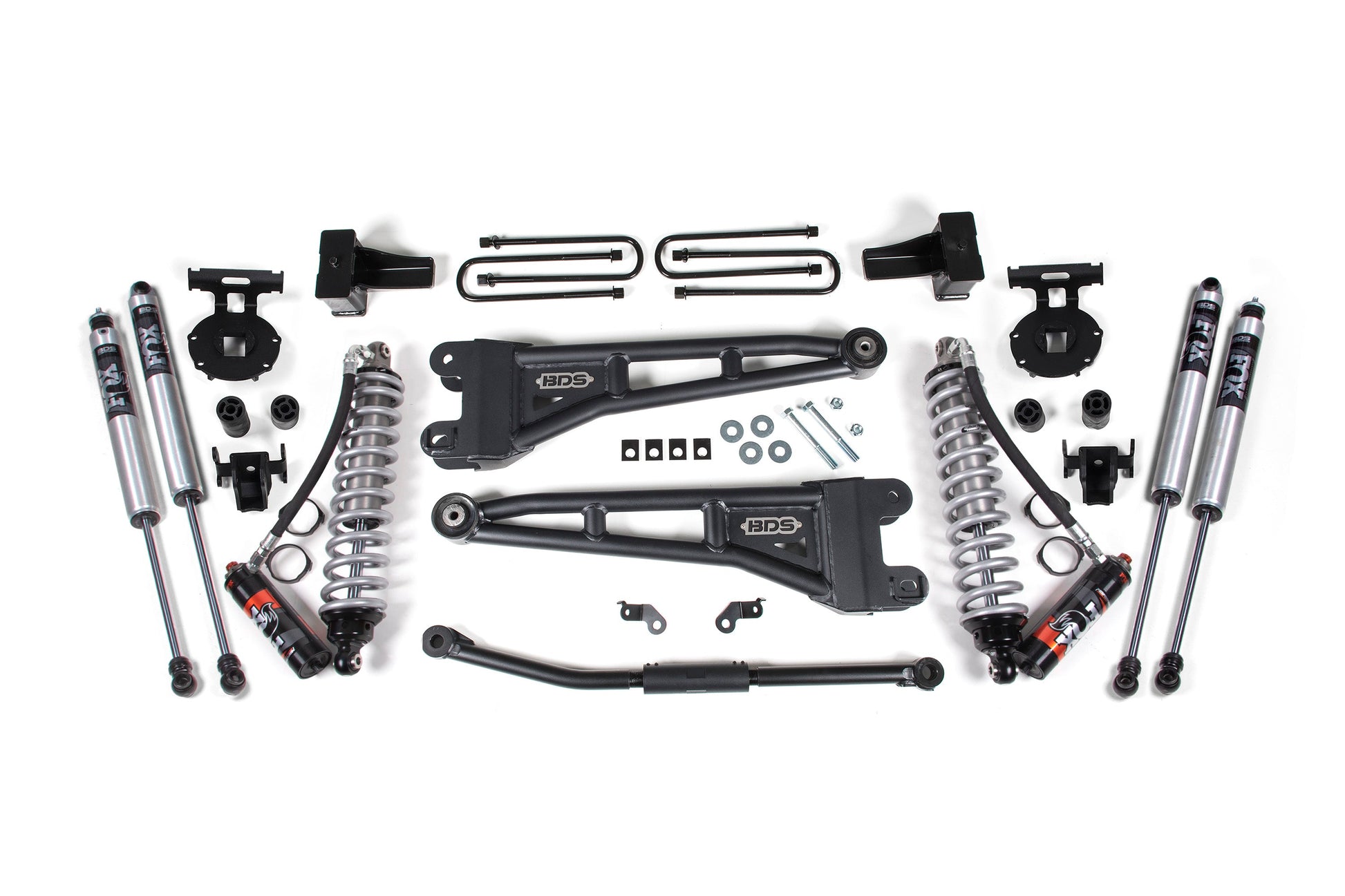 BDS Suspension raises the bar with this 2.5-inch radius arm lift kit with FOX 2.5 Performance Elite coilover shocks for 2011-216 Ford F250 and F350 Super Duty diesel-powered trucks. Designed to improve stance, performance, and capability, this kit includes everything necessary to set your vehicle up right with clearance for up to 35" tires.
