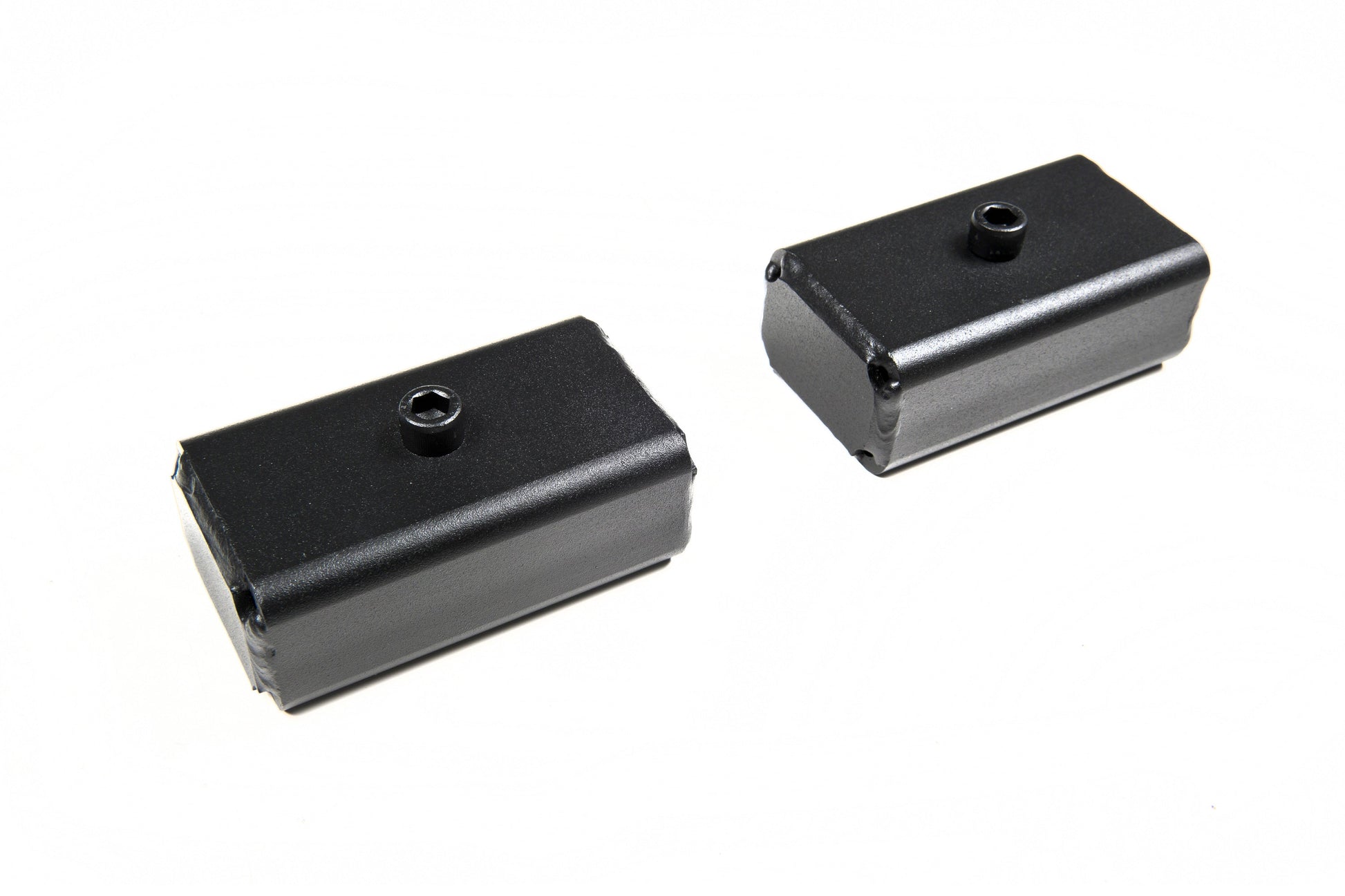 These high quality 2" fabricated lift blocks are specially designed to lift the rear of later model GM HD trucks. They come finished in a durable textured black powder coat and uses a flat (non-tapered) design. Uses 18mm pin size. Sold in pairs.