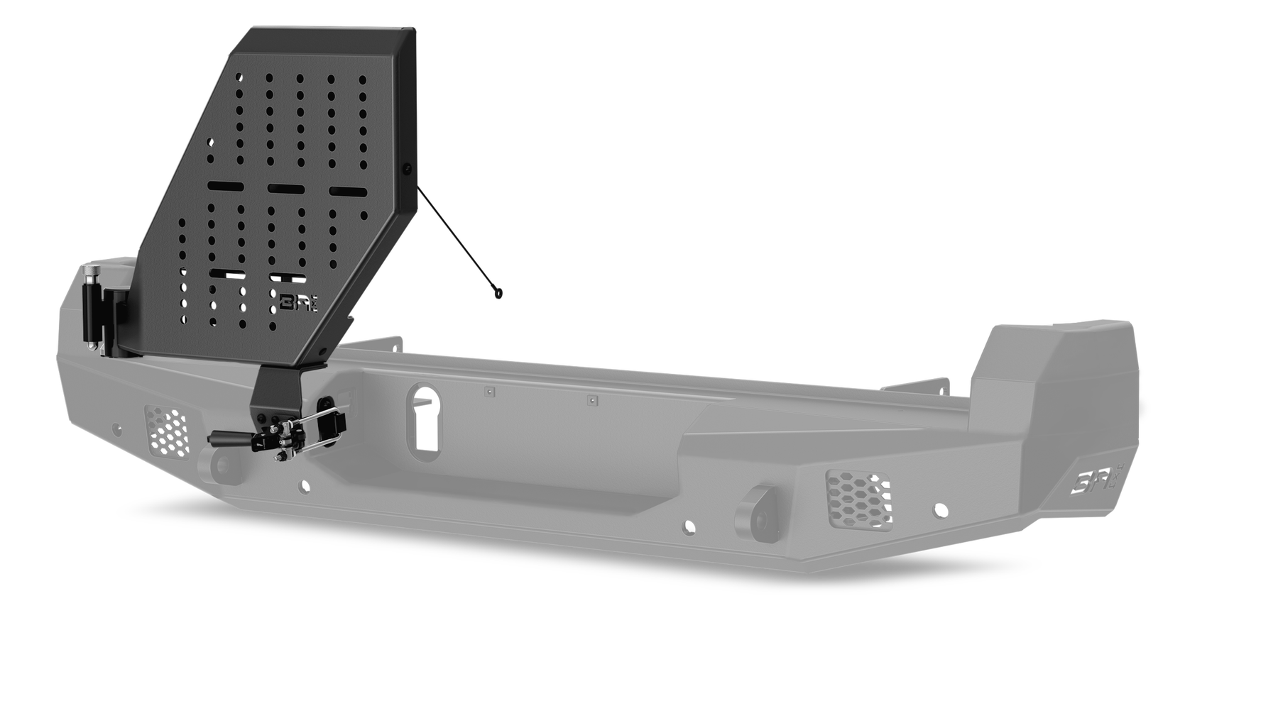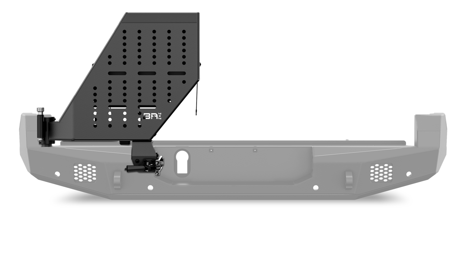 - Adaptable storage solution to mount almost anything (spare tire, jerry cans, tread boards, rotopax, hi-lift jack, storage cases, etc.)