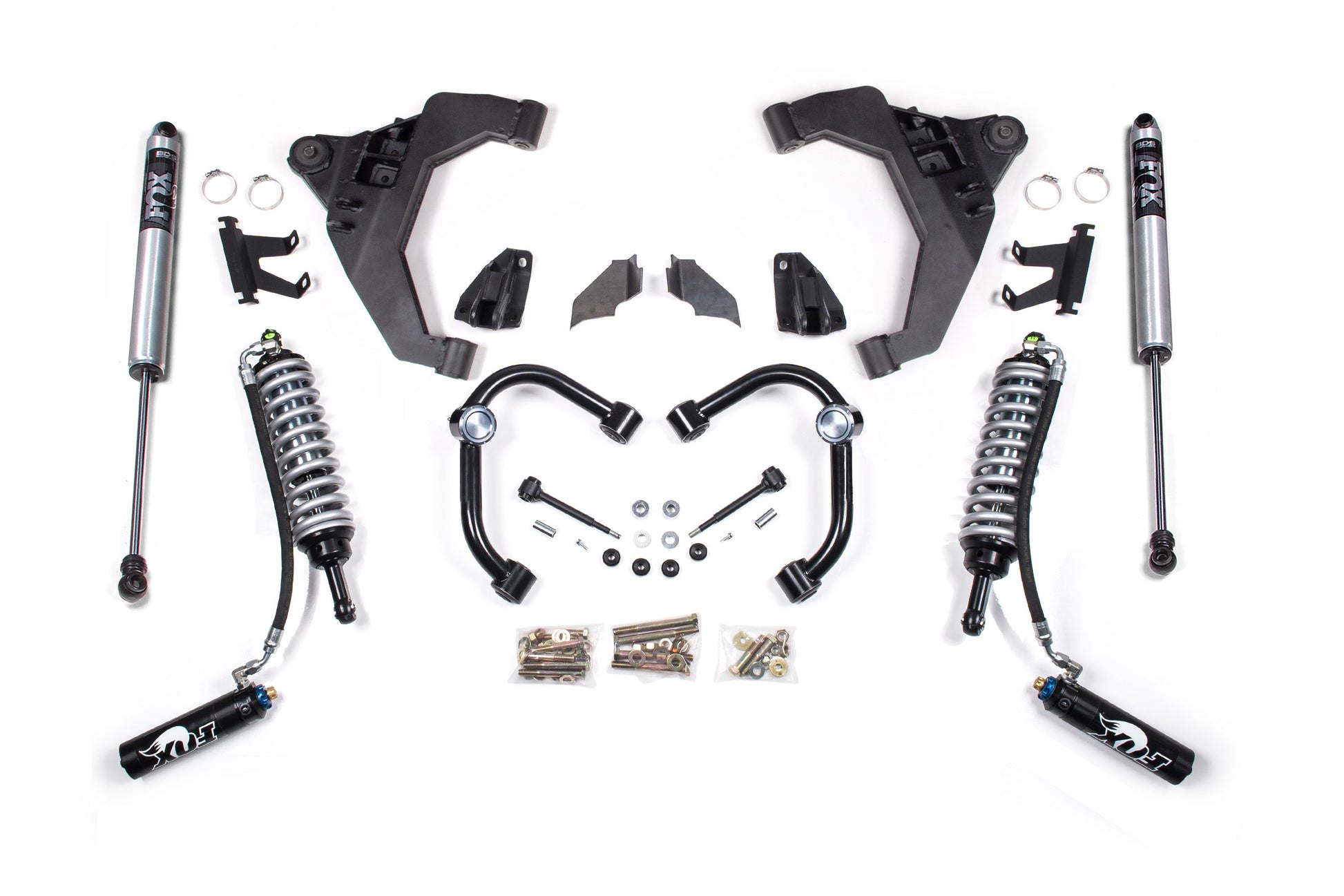 This kit takes principles on BDS's engineering standard for improved ground clearance, strength, and offroad protection while correcting suspension and steering geometry for great on-road handling characteristics. Up front, the kit utilizes FOX 2.5 coil-over shocks, heavy duty tubular upper control arms, fully boxed and gusseted lower control arms, and multipiece differential relocation brackets to maintain correct CV angles. These combined with the provided sway bar links, supplied hardware and more provide a comprehensive front suspension lift ready for whatever you throw at it.
