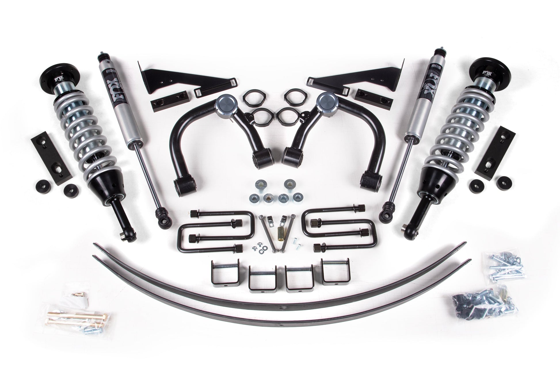 In the rear, BDS supplies a set of add-a-leafs to provide 1" of lift to level out the truck and utilizes a complementary set of FOX 2.0 Performance shocks for an improved ride.