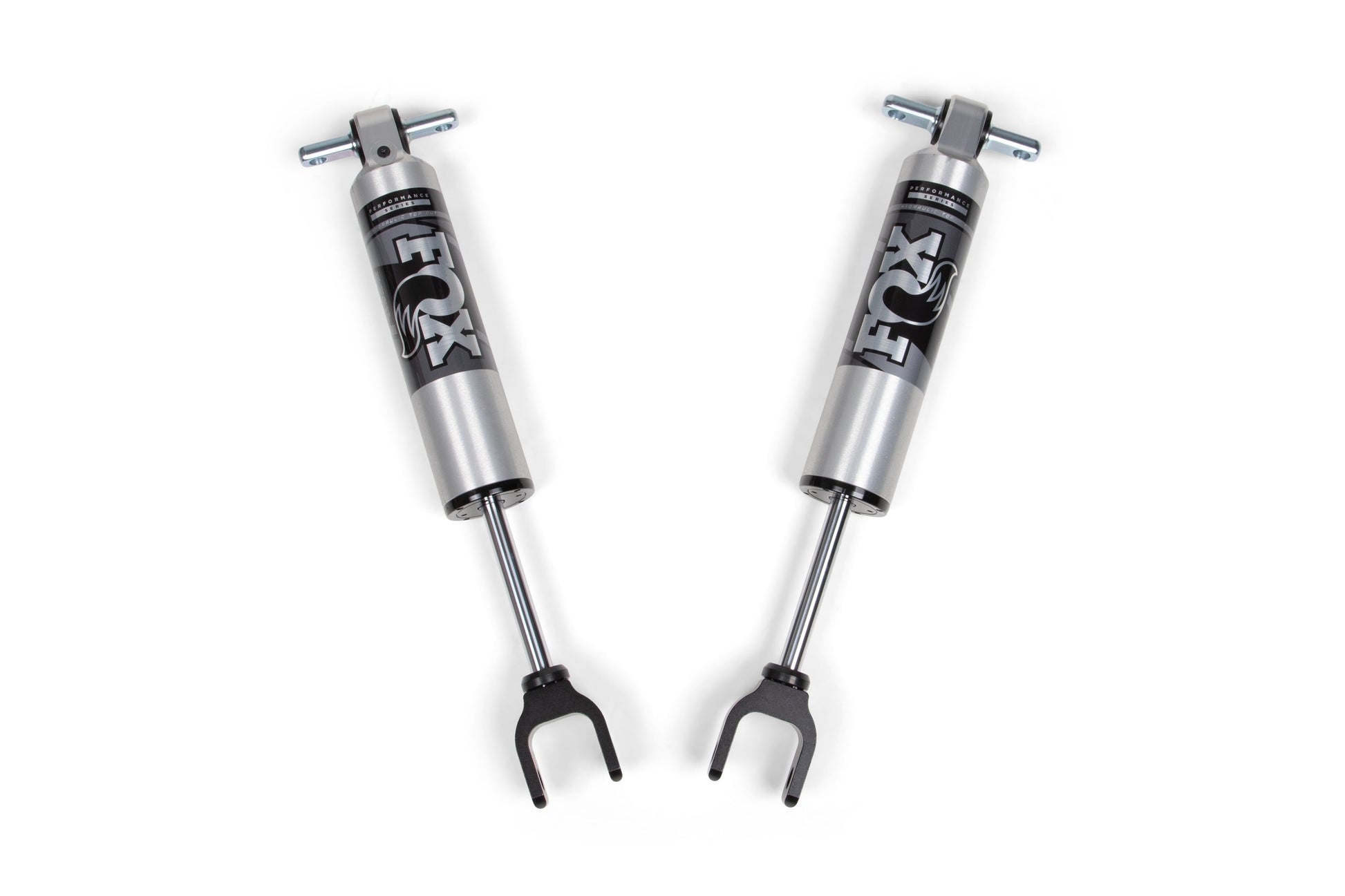 In the rear, a 2" block and u-bolt kit is used to create a level to slightly tail high stance when unloaded. Rounding out these kits are a pair of specially tuned FOX 2.0 performance series IFP shocks ready to soak up the terrain.