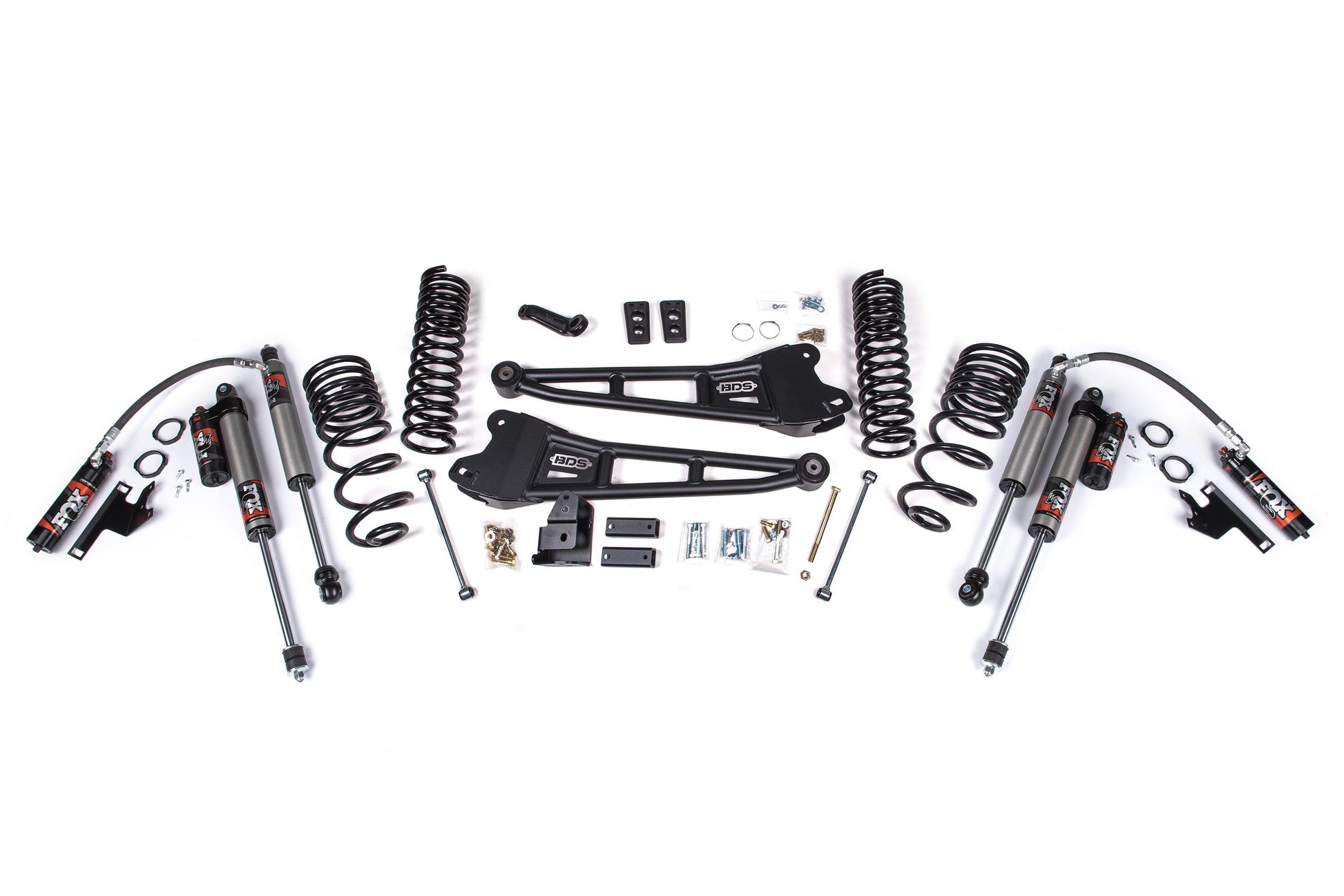 Take your 2014-2018 RAM 2500 diesel powered truck to the next level with this 4-inch radius arm lift kit from BDS Suspension. Designed to improve stance, performance, and capability, this kit includes everything necessary to set your truck up right with clearance for up to 35" tires.