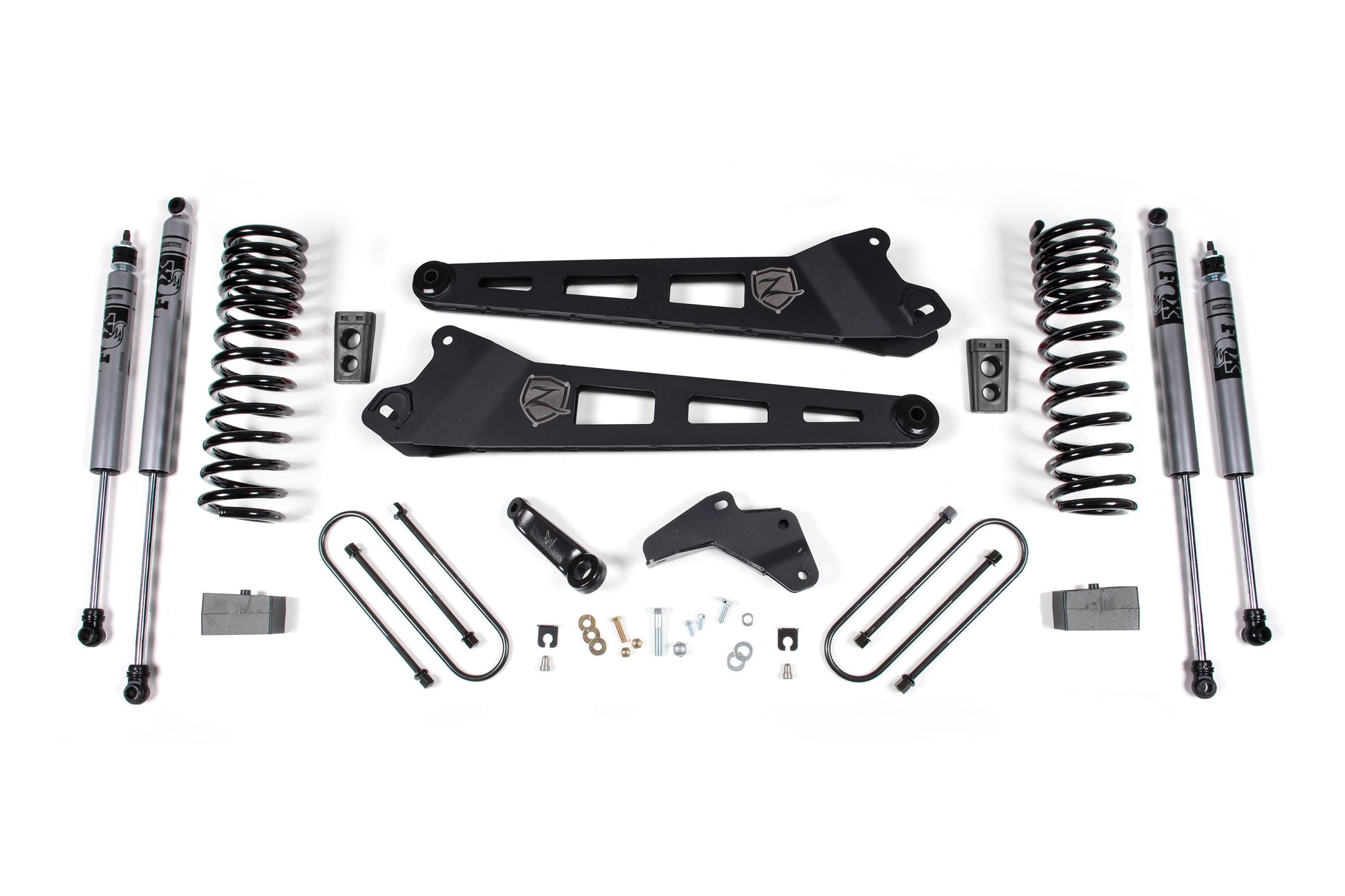 Take your RAM 3500 to new heights with this 4" lift kit from Zone Offroad. Kits include everything needed from full length coil springs and stout radius arms to steering correction and rear lift to level the stance. Get the look, performance, and capability your truck deserves with clearance for up to 37" tires.