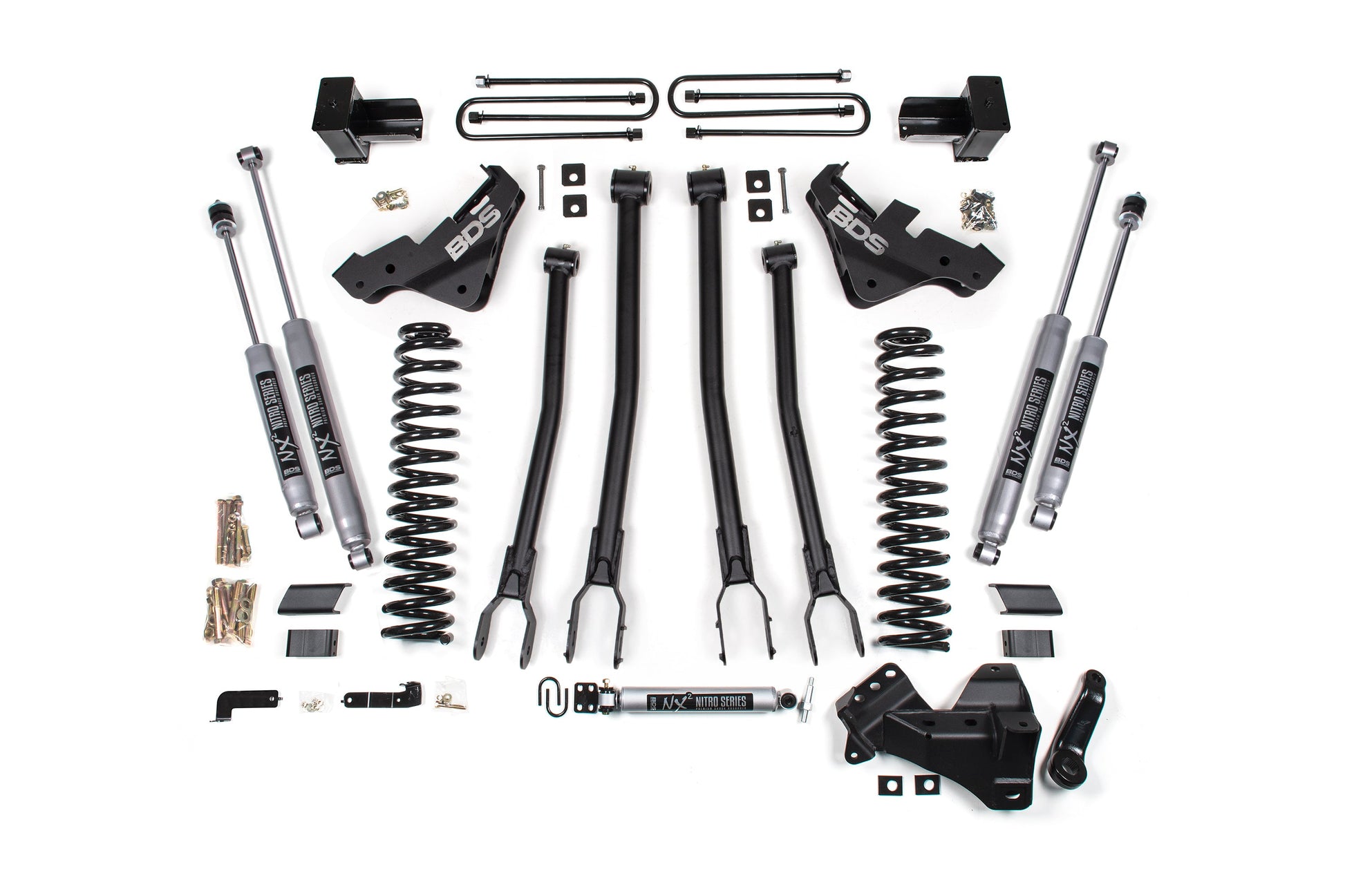 Take your dual rear wheel "DRW" Ford F350 Super Duty Gas truck to the next level with this 5-inch 4-Link lift kit from BDS. Designed to improve stance, performance, and capability, this kit includes everything necessary to set your dually Ford truck up right with clearance for up to 37" tires.