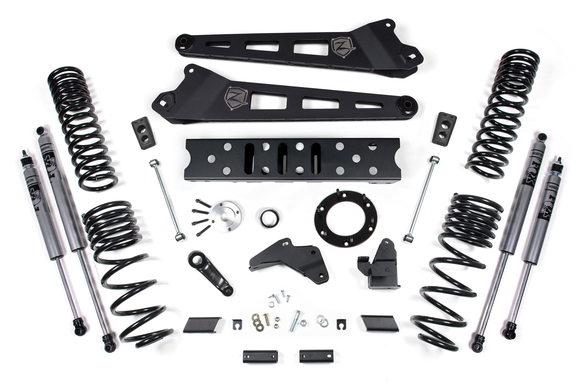 Take your RAM 2500 to new heights with this 6.5" radius arm lift kit from Zone Offroad. Kits include everything needed from full length coil springs and heavy duty radius arms to steering correction and rear lift to level the stance. Get the look, performance, and capability your truck deserves with clearance for up to 37" tires.