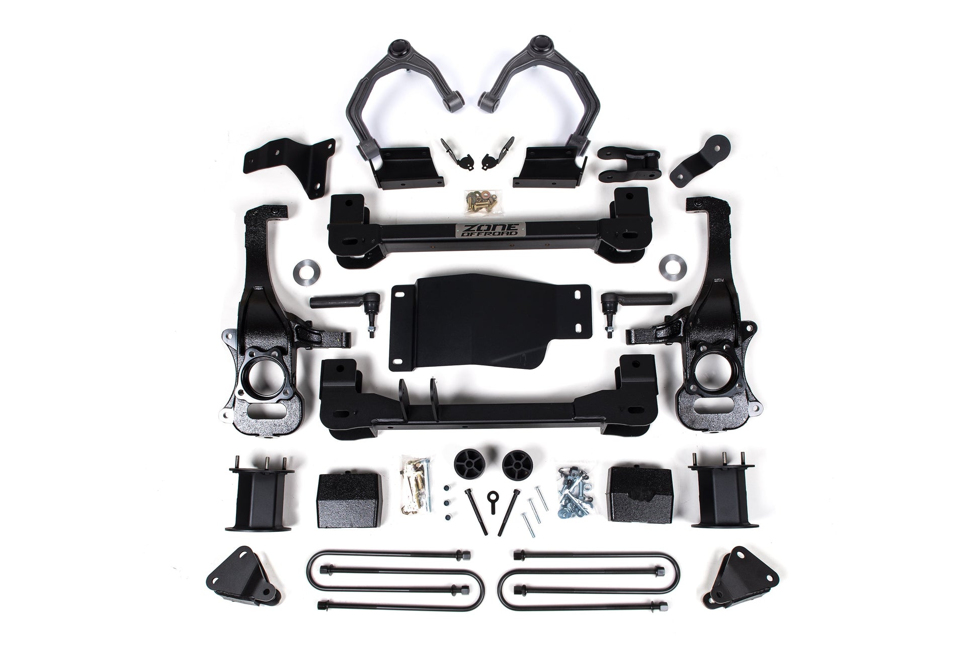 Take your GMC Denali 1500 to new heights with this 6" lift kit from Zone Offroad. These kits are designed to allow full functionality oft he ARC (adaptive ride control) system factory installed on the Denali to retain all the features of your truck at the new lift height. Kits include everything needed from high strength crossmembers and steering knuckles to strut spacers and ARC sensors, adventure series upper control arms, differential relocation brackets and more. Get the look, performance, and capability your truck deserves with clearance for up to 35" tires.