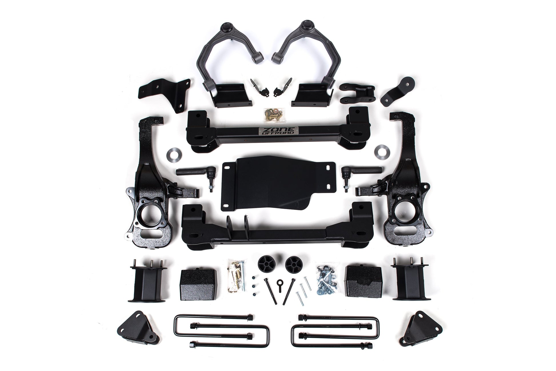 Take your GMC Denali 1500 to new heights with this 6" lift kit from Zone Offroad. These kits are designed to allow full functionality oft he ARC (adaptive ride control) system factory installed on the Denali to retain all the features of your truck at the new lift height. Kits include everything needed from high strength crossmembers and steering knuckles to strut spacers and ARC sensors, adventure series upper control arms, differential relocation brackets and more. Get the look, performance, and capability your truck deserves with clearance for up to 35" tires.
