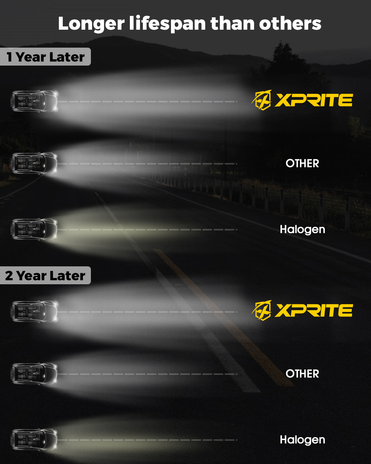 Installation is a breeze with our plug-and-play design and included H4 to H13 adapters. Flicker protection is built-in, and with an IP67 waterproof rating, they're ready for any weather.