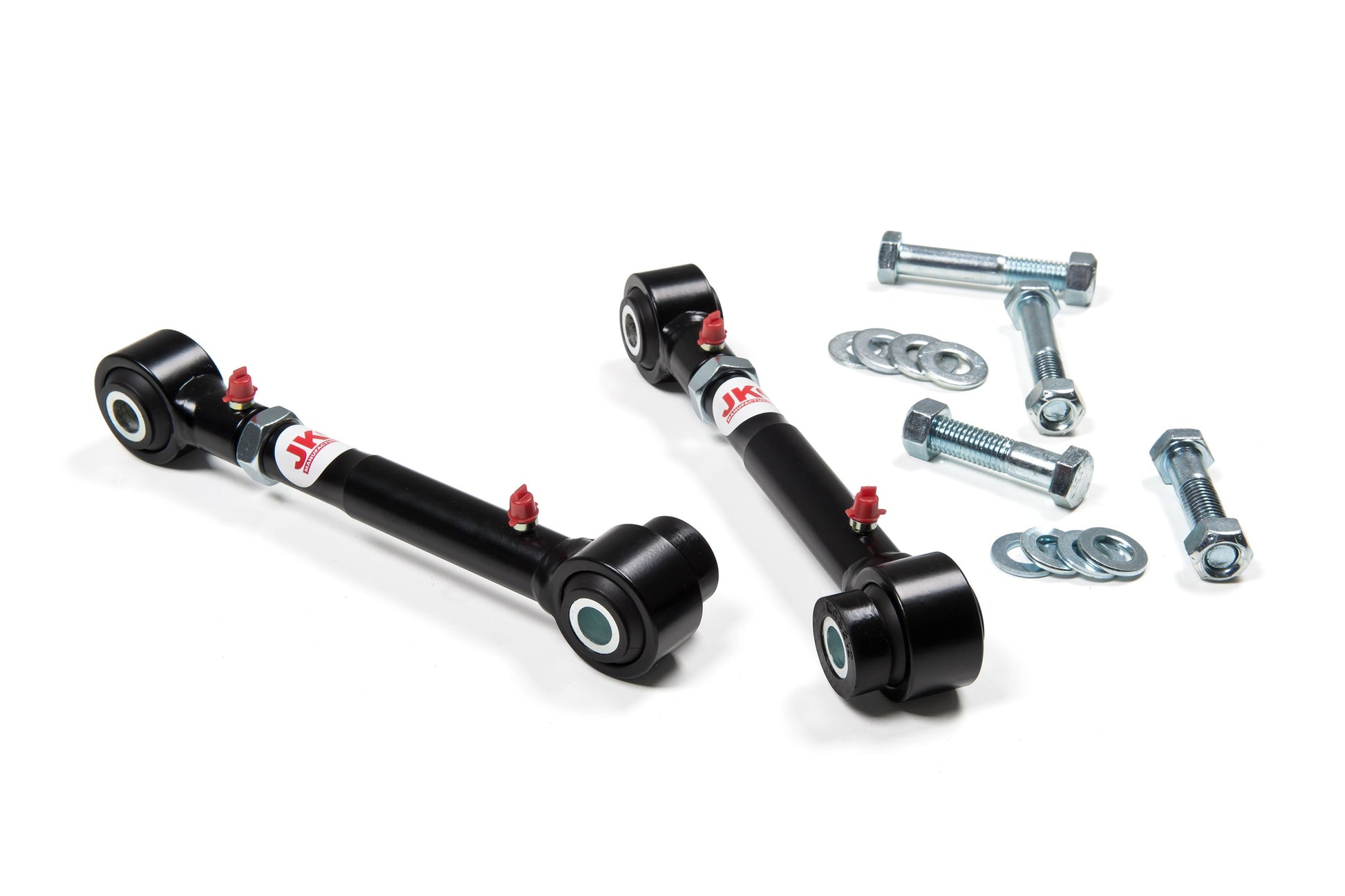 Increase the handling of your Jeep(R) Wrangler JK Rubicon with adjustable front sway bar links designed to fit lift kits from 2.5" to 6" lift heights. These are fixed mounted (non-disconnecting) versions of the 2030 and 2034 front sway bar disconnects for Rubicon owners that want all the great benefits of an adjustable sway bar link without the disconnect feature. Utilizing the best link design in the industry we are able to provide a fixed mounted link that is greaseable, adjustable and serviceable. The high-misalignment poly bushings allow the suspension to work to its full potential when the factory Rubicon electronic sway bar is disconnected.