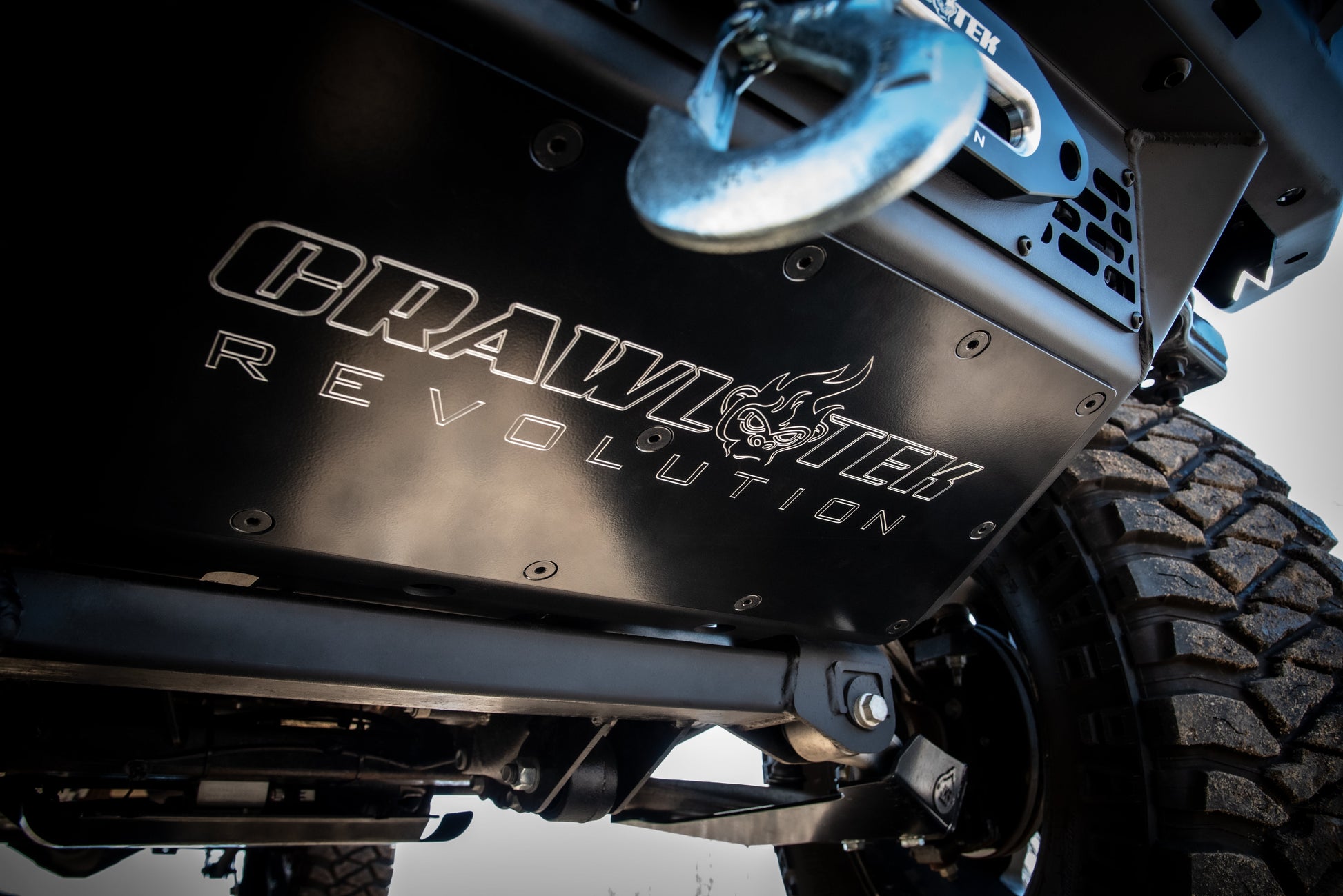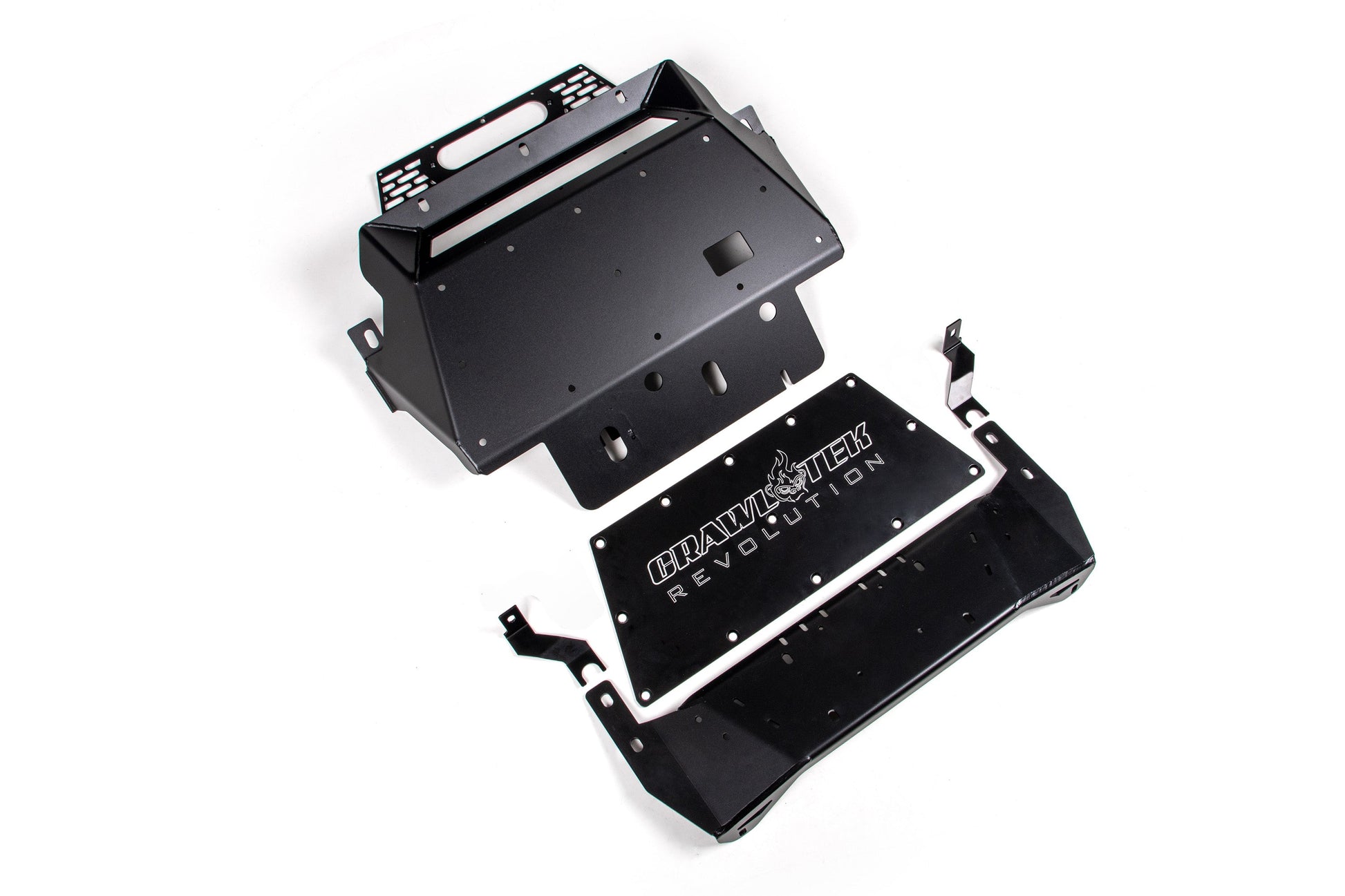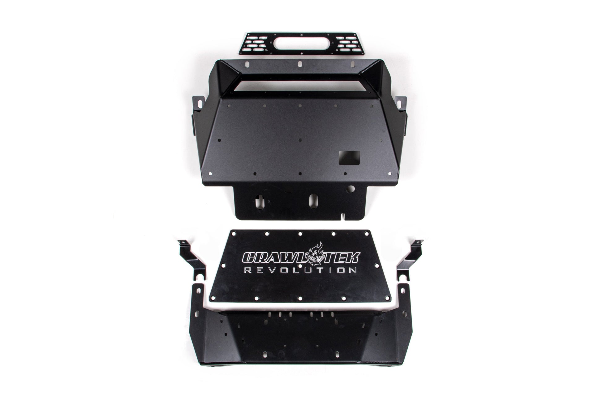 They're manufactured in Michigan and tested on various terrains across this country to include the rocks, trails, dunes and backwoods from coast to coast. They are a direct fit replacement and come finished in a durable 2-stage e-coat plus powder coat process for superior durability and corrosion resistance. The winch mount skid accommodates bottom-mount center drum winches up to 10,000lbs. Give your Bronco the styling and protection it deserves with CrawlTek.