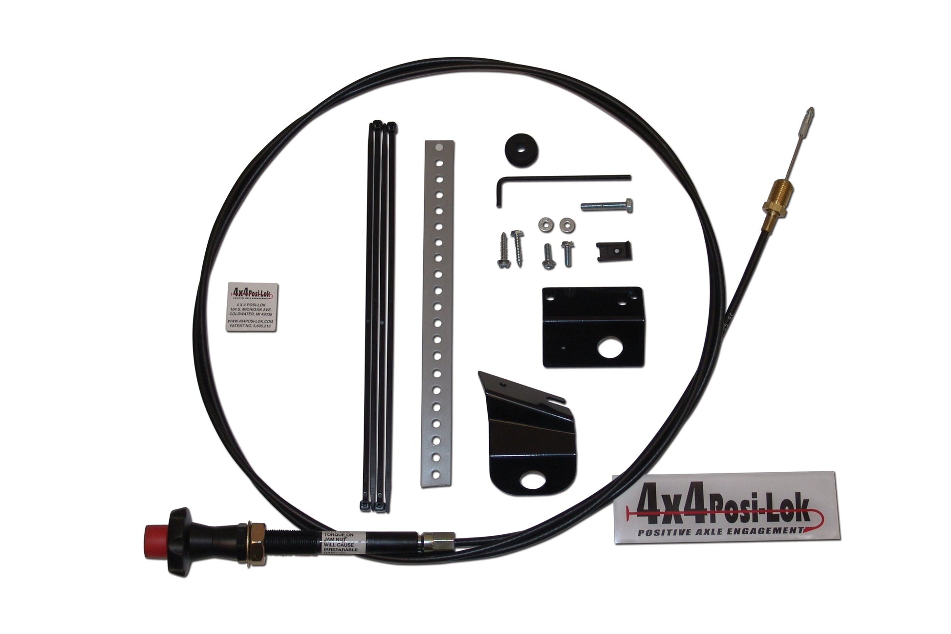4x4 Posi-Lok replaces stock 4WD actuators, allowing front axle engagement control from inside the cab. After engaging the transfer case, a quick pull of the 4x4 Posi-Lok cable slides the shift fork and collar to connect the right front axle to the intermediate shaft and 4-wheel drive is engaged! Simply reverse the procedure to disengage 4-wheel drive. Works with lockers - when the front axle is locked, simply disengage the passenger side in order to make turns without wheel hop.