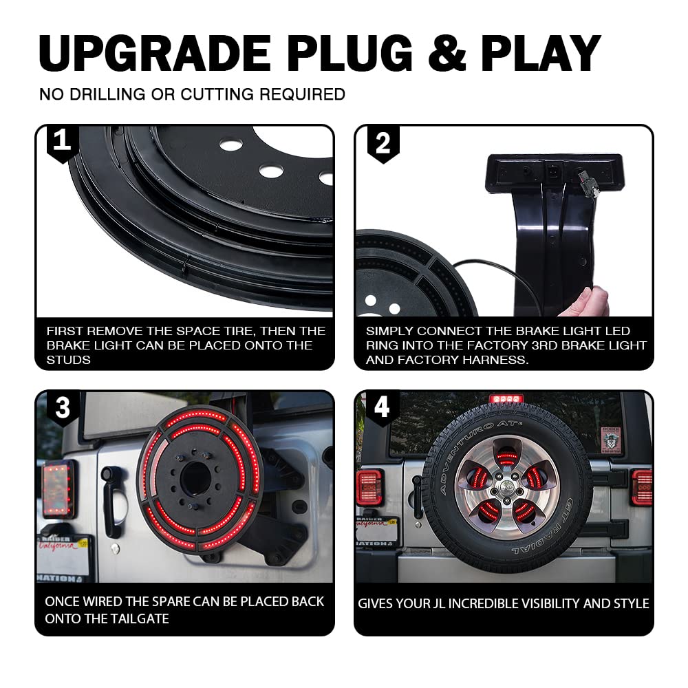 - Perfect Fitment - Our third rear wheel lights is suitable for 14" spare tires in diameter.Compatible with 2007-2018 Jeep Wrangler JK/JKU.