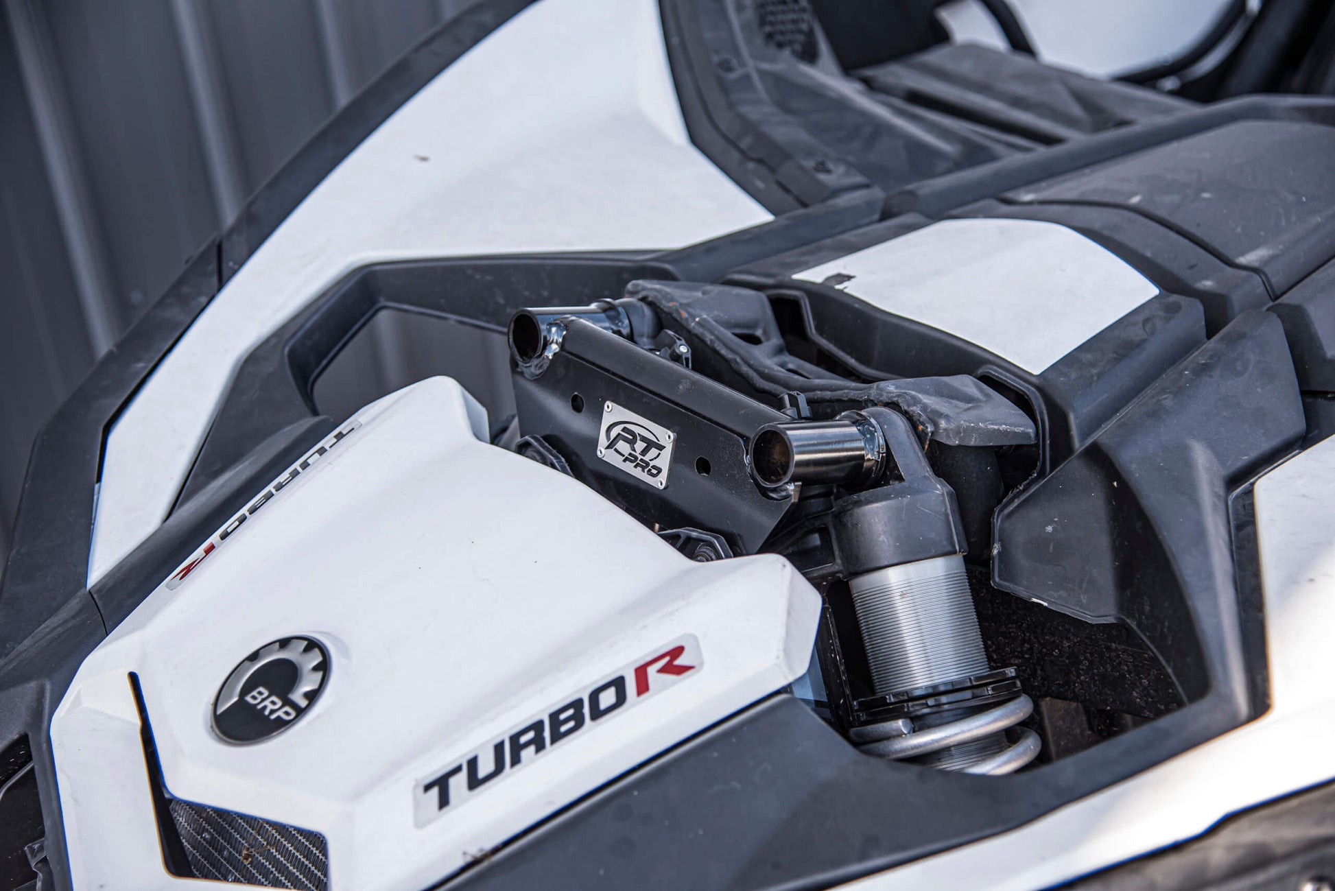 The Maverick X3 is an incredible machine right out the gate, but one potential fail point is the front coilover mounts. RT Pro has the solution with a true dual sheer front coilover brace kit for extra strength and rigidity. This bolt-on bracket is designed for easy installation without any cutting or welding required. The brackets are built from 3/16" steel and 1-1/4" OD x 1/8"-wall steel tube. The unique design allows you to maintain coilover positioning for maximum coilover and reservoir clearance without any need to trim plastic panels. The brackets also integrate mounting holes to allow auxiliary offroad lights to be mounted if you are looking for a spot to mount them. Upgrade your Maverick X3s front coilvoer brake kit from RT Pro.