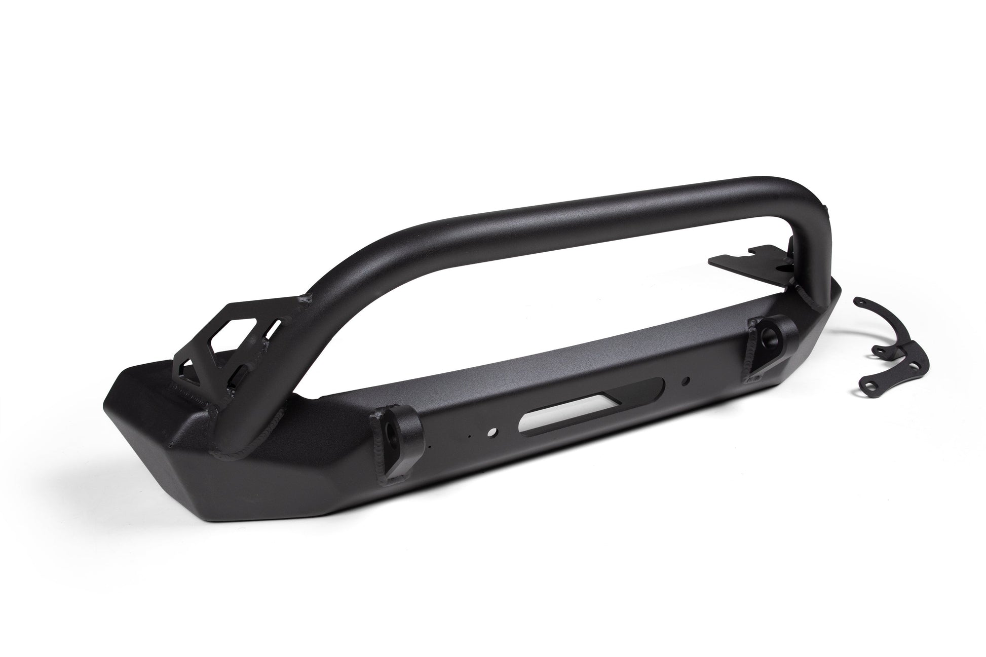 If you are looking for a front bumper that provides greatly improved approach angle while also providing a sleek and recessed winch mount, look no further than the CrawlTek Inferno Front Winch Bumper. Made from 3/16" HRPO steel, the Inferno series bumper is designed for maximum clearance and minimal excess. The winch mount is designed to place the winch towards the bottom of the frame rails, allowing for maximum airflow to the front of the vehicle. The flat top bull bar is made from 1-3/4" steel tubing and provides added protection for the front grille and winch.