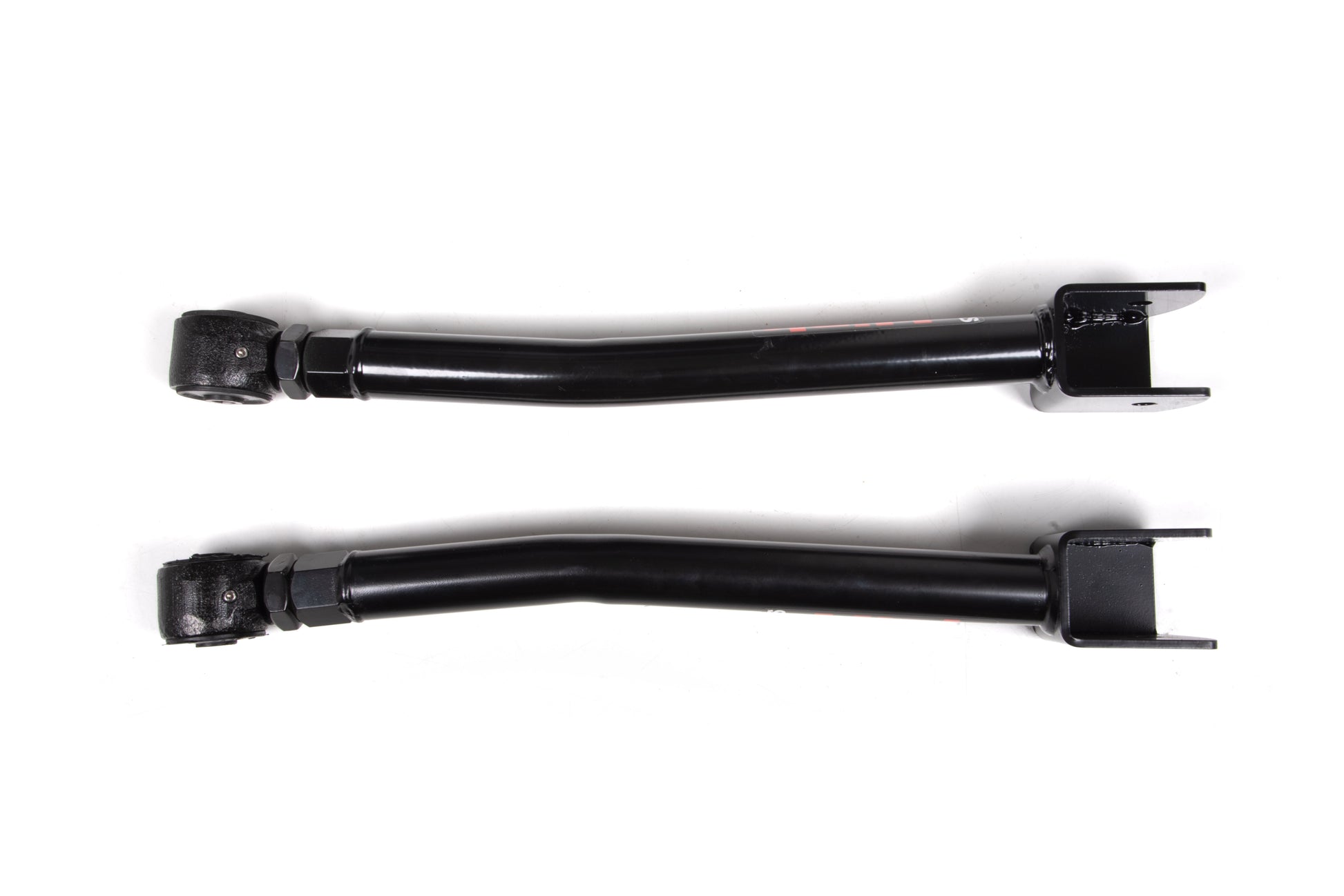Enhance your Jeep™s off-road prowess and reliability with JKS J-Link Adjustable Control Arms - now available with premium rubber bushings! Engineered specifically to reduce NVH characteristics (Noise, vibration, harshness), these factory style maintenance-free rubber bushings come pre-installed at both ends and will ensure a quiet, controlled ride with hassle-free operation in any environment. CNC-bent from stout DOM tubing with a forged end, the fully adjustable design allows you to fine-tune suspension geometry and alignment. With heavy duty 1-1/4"-12 threads and hex shaped weld-in bungs, tightening of the included jam nuts is super easy for quick and secure adjustments. Arms are powder-coated for a durable, long-lasting finish. Sold in pairs.