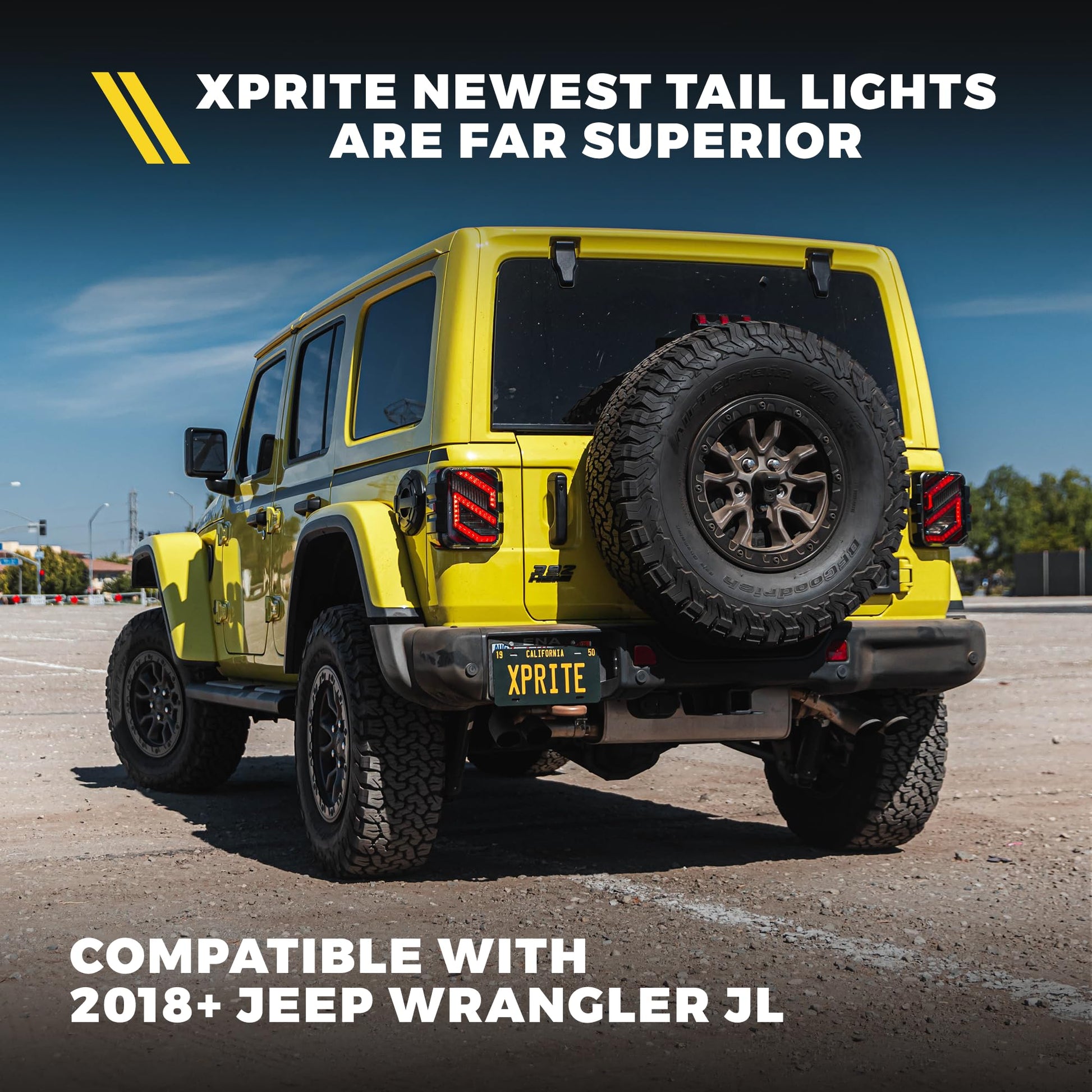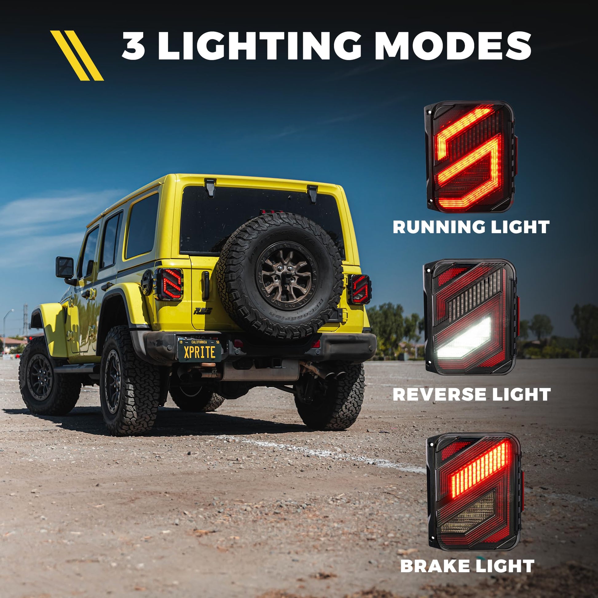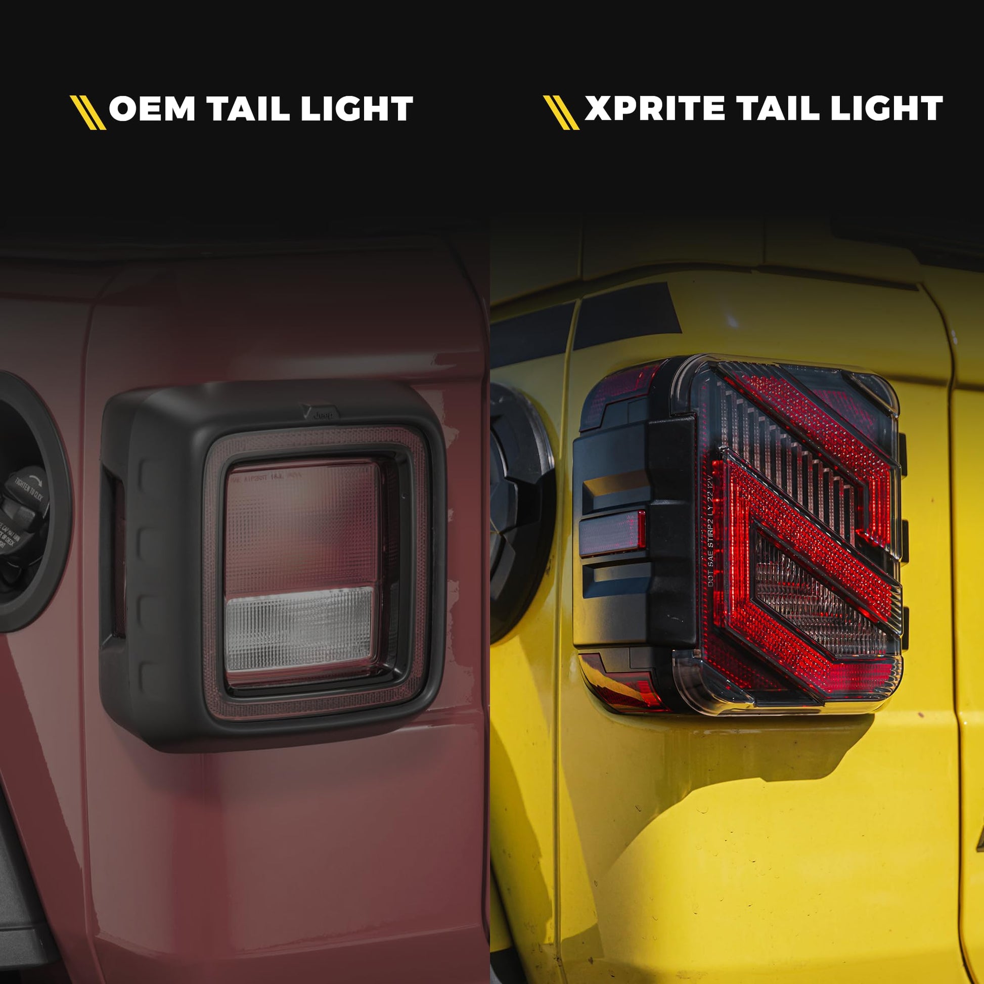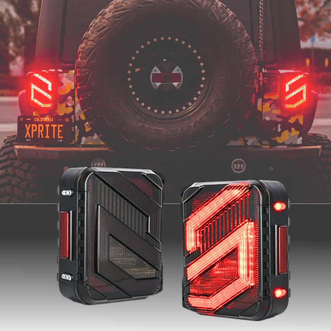 - JL-Specific Design - Xprite smoked tail lights for Jeep Wrangler JL Sport, Sport S, Sahara, Rubicon, Moab, Willys, Black and Tan, Freedom.