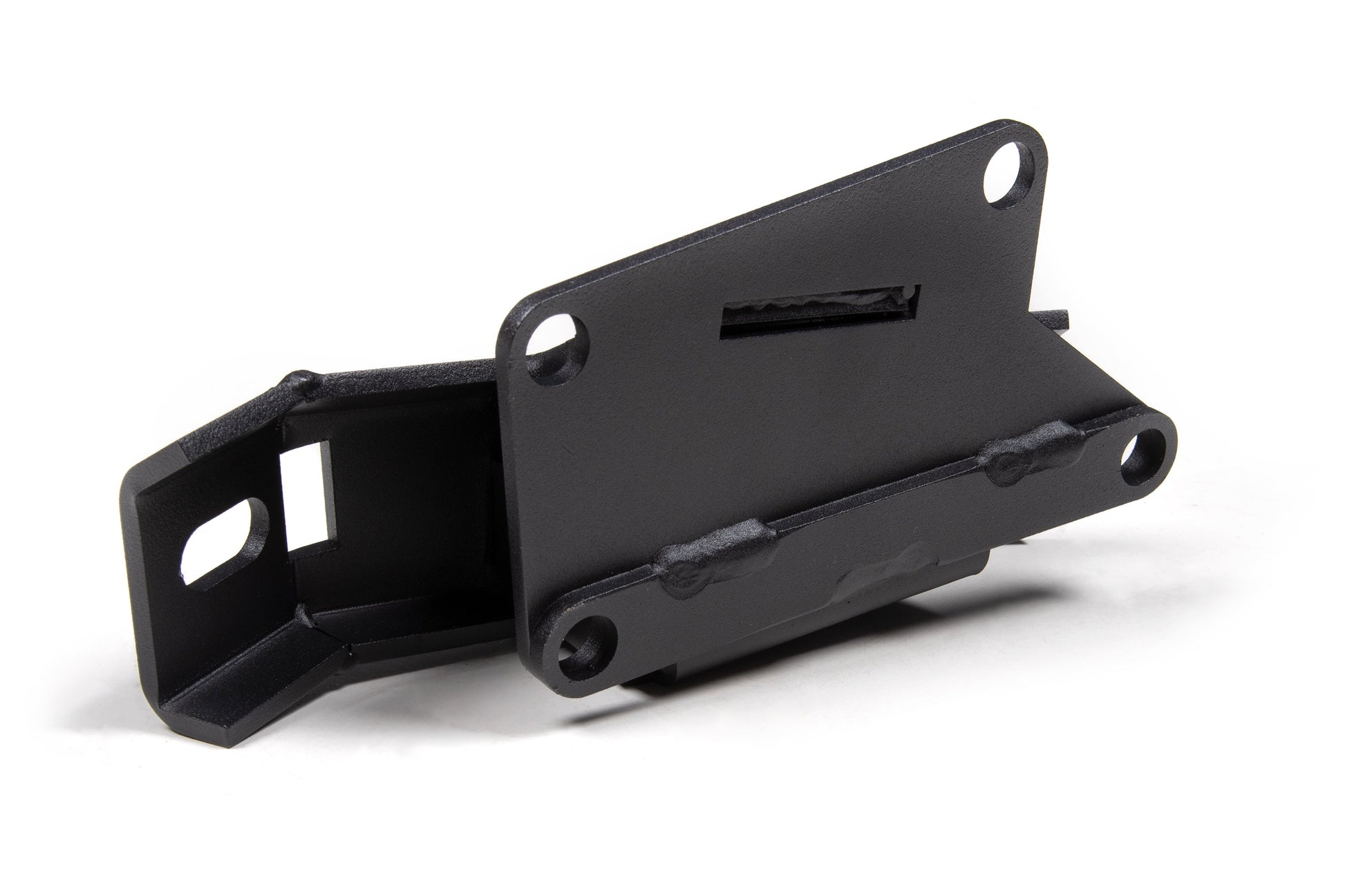 When installing taller lift kits on the later model RAM HDs it is necessary to index the transfer case to improve the front output operating angle for reinstallation of the factory front driveshaft. While rare, gas trucks equipped with the manual lever-operated transfer case require an additional bracket to retain shifter functionality. BDS offers this shifter extension along with the necessary hardware for an easy install. All parts are backed built of high strength steel and finished in a durable textured black powdercoat. For use on 6-bolt transmission-to-transfer case mounts with manual shifter.