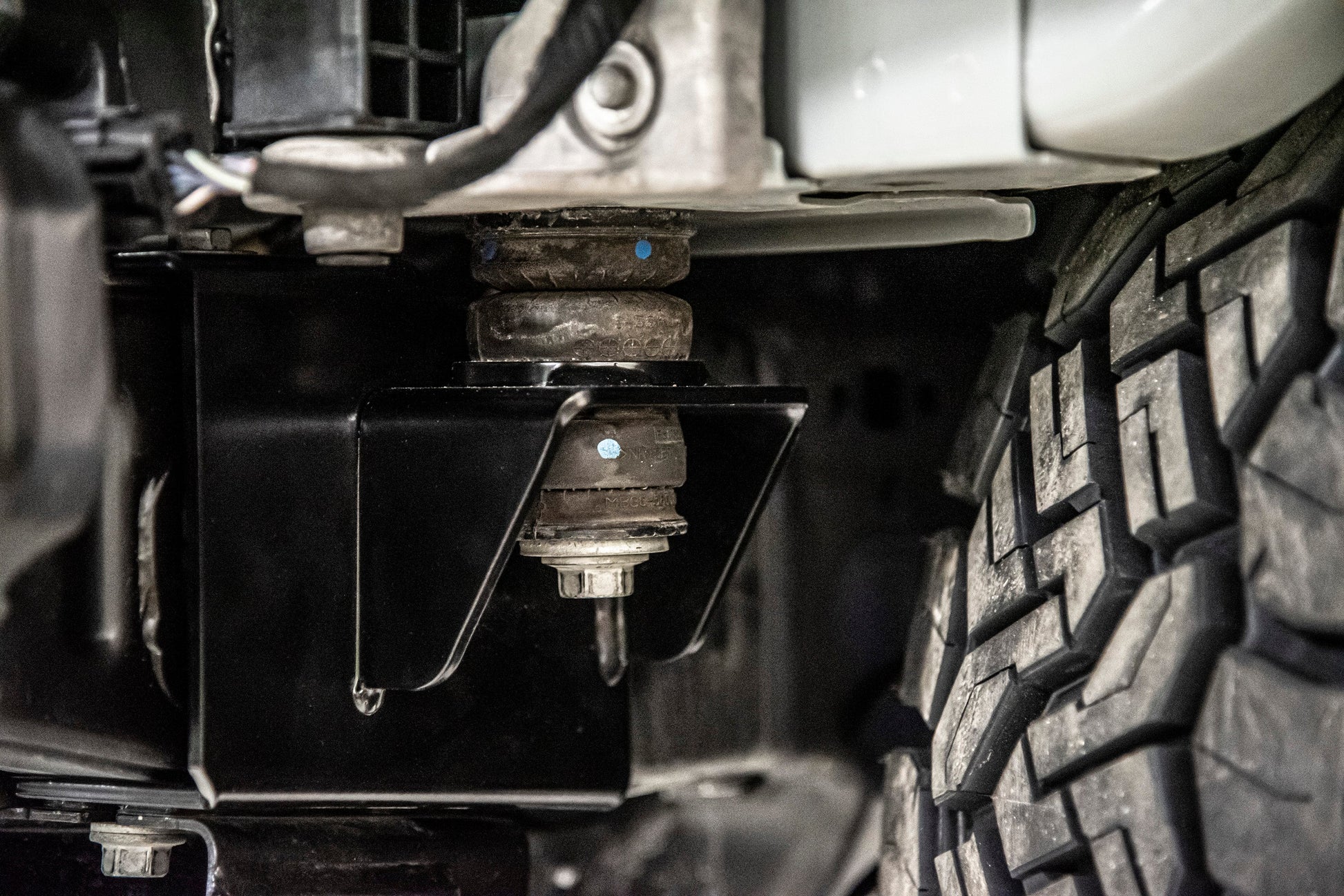 JKS builds on the capability of the new Ford Bronco with a new Max Tire Clearance Kit designed to optimize the front wheel-well to install larger tires on your stock height or lifted Bronco models. High strength body mount brackets improve clearance while allowing compatibility with stock and aftermarket "stubby" bumpers.