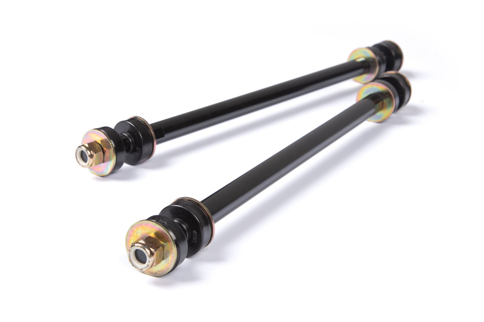 The Zone heavy-duty replacement sway bar links are designed specifically for lifted applications. These sway bar links are designed to correct the sway bar operating angle for improved performance for use on Zone lift kits and are compatible with most other lift kits on the market. Zone sway bar links use high-strength steel construction with welded eyelets and a clear zinc finish. Polyurethane bushings and sleeves ensure long bushing life and quiet operation.