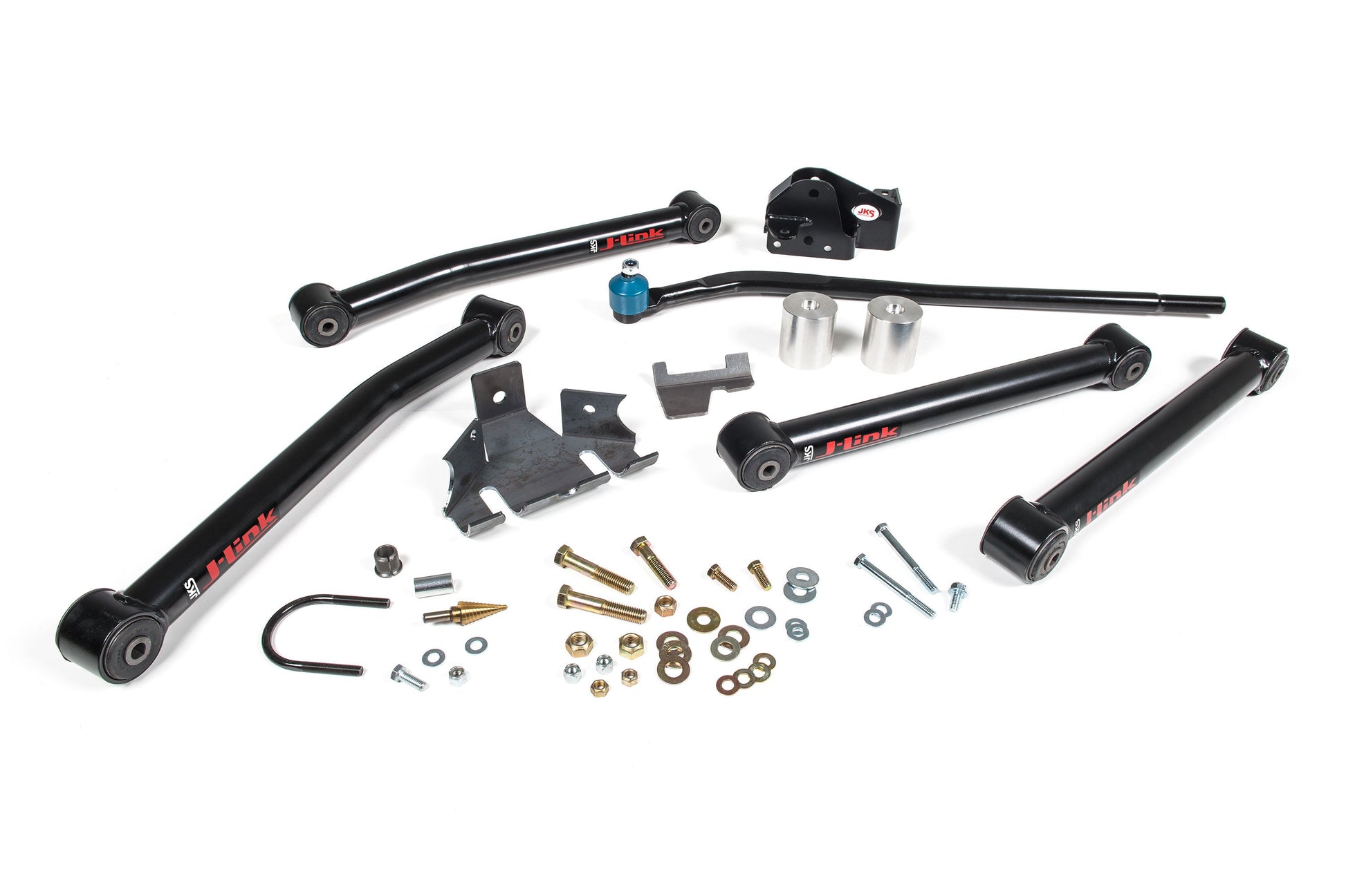 Enhance the handling of your Jeep Wrangler JK by installing a JKS Steering and Control Arm Upgrade kit. You get a Drag Link Flip System, extended length Control Arms and track bar relocation brackets. Steering Geometry improves dramatically. Extended length J-LINK Control Arms correct caster, while offering a significant strength upgrade over factory arms. Multi-Mount-Point JKS Track Bar Relocation Brackets and Support Gussets work together to make the weak factory mounts nearly indestructible.
