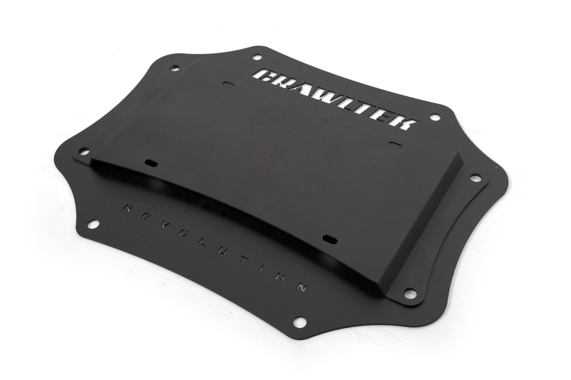 Have you removed your factory tire carrier? Looking for something to cover it that horrible hole left over? Look no further than the CrawlTek Revolution Tailgate Plate. Made in the USA from 16ga 5052 aluminum our tailgate plate features a unique and pleasing design. Featuring a Fine Textured Black Powdercoat powder coated finish the tailgate plate comes with new 18-8 stainless hardware to attach it to your vehicle.
