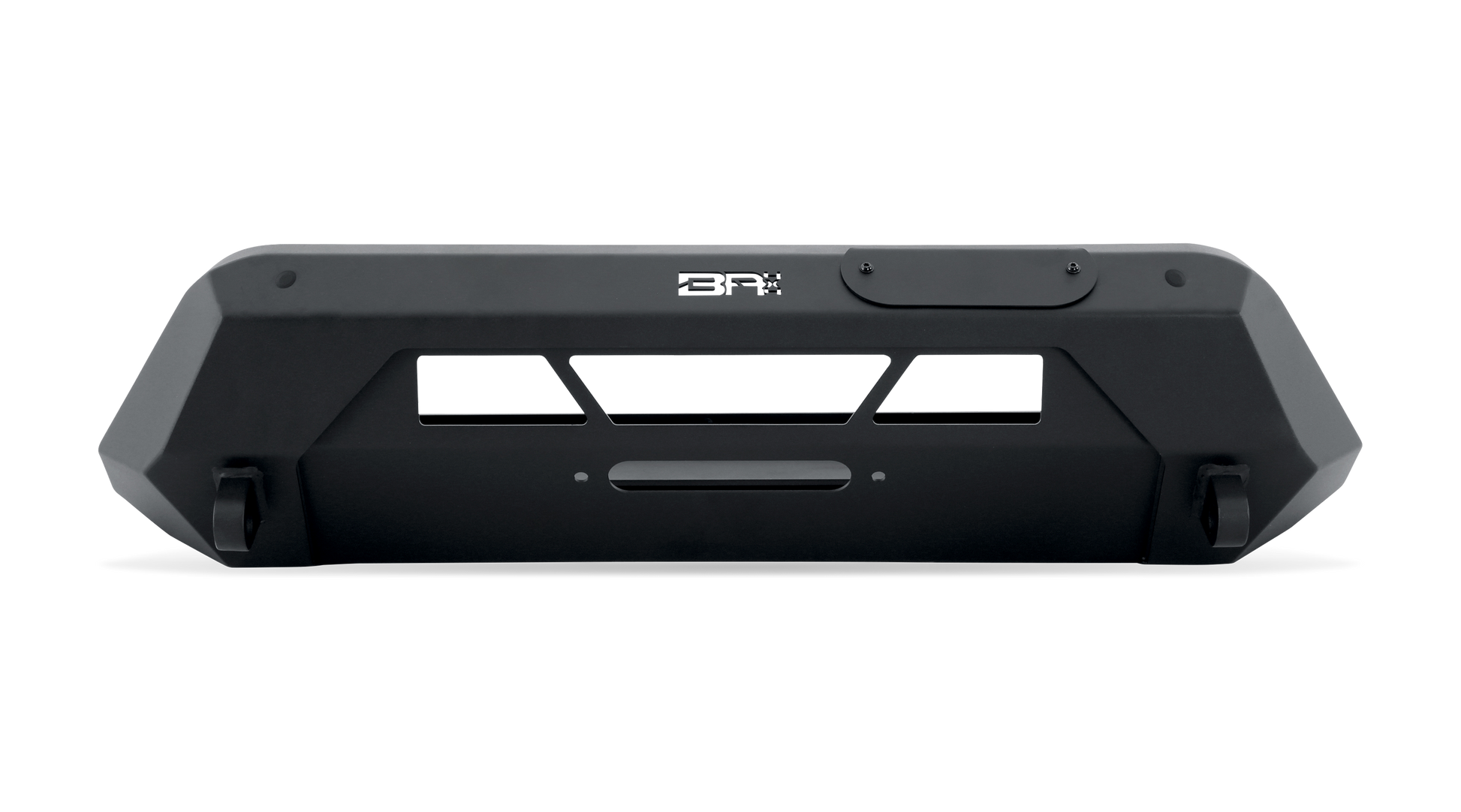 Constructed from durable 1/8" steel plate, this compact yet robust bumper supports a 10,000 lb winch, combining strength and functionality in a sleek design.