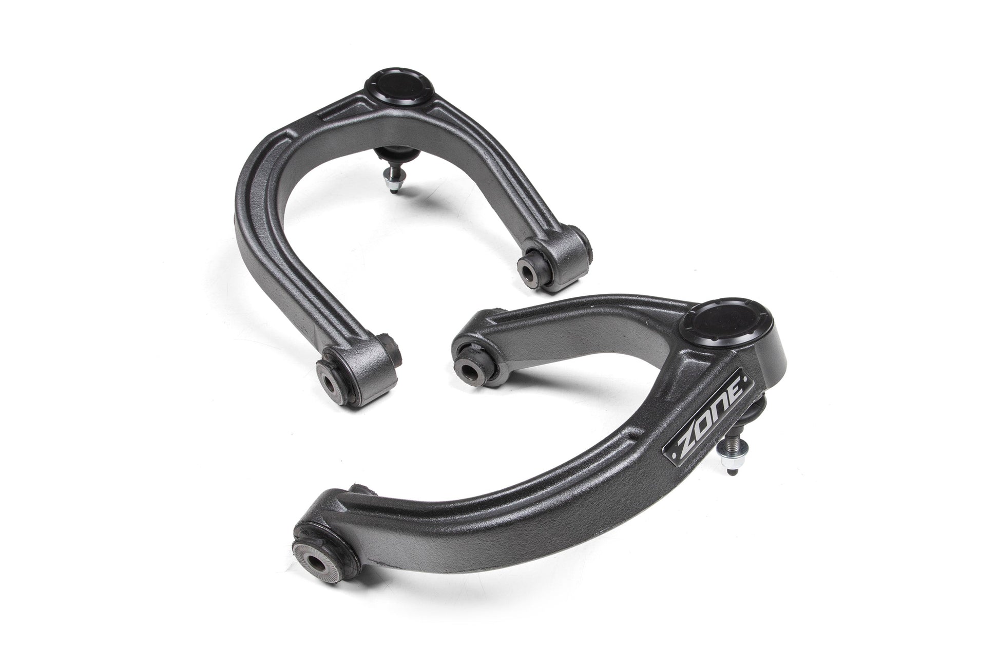 Upgrade your Bronco's stock upper control arms with these high strength Adventure Pro Series units from Zone Offroad. Designed for use on lifted setups these arms all for increased droop travel, improved strength and great looks. The arms come ready to install right out of the box with rubber bushings and HD ball joints preinstalled.