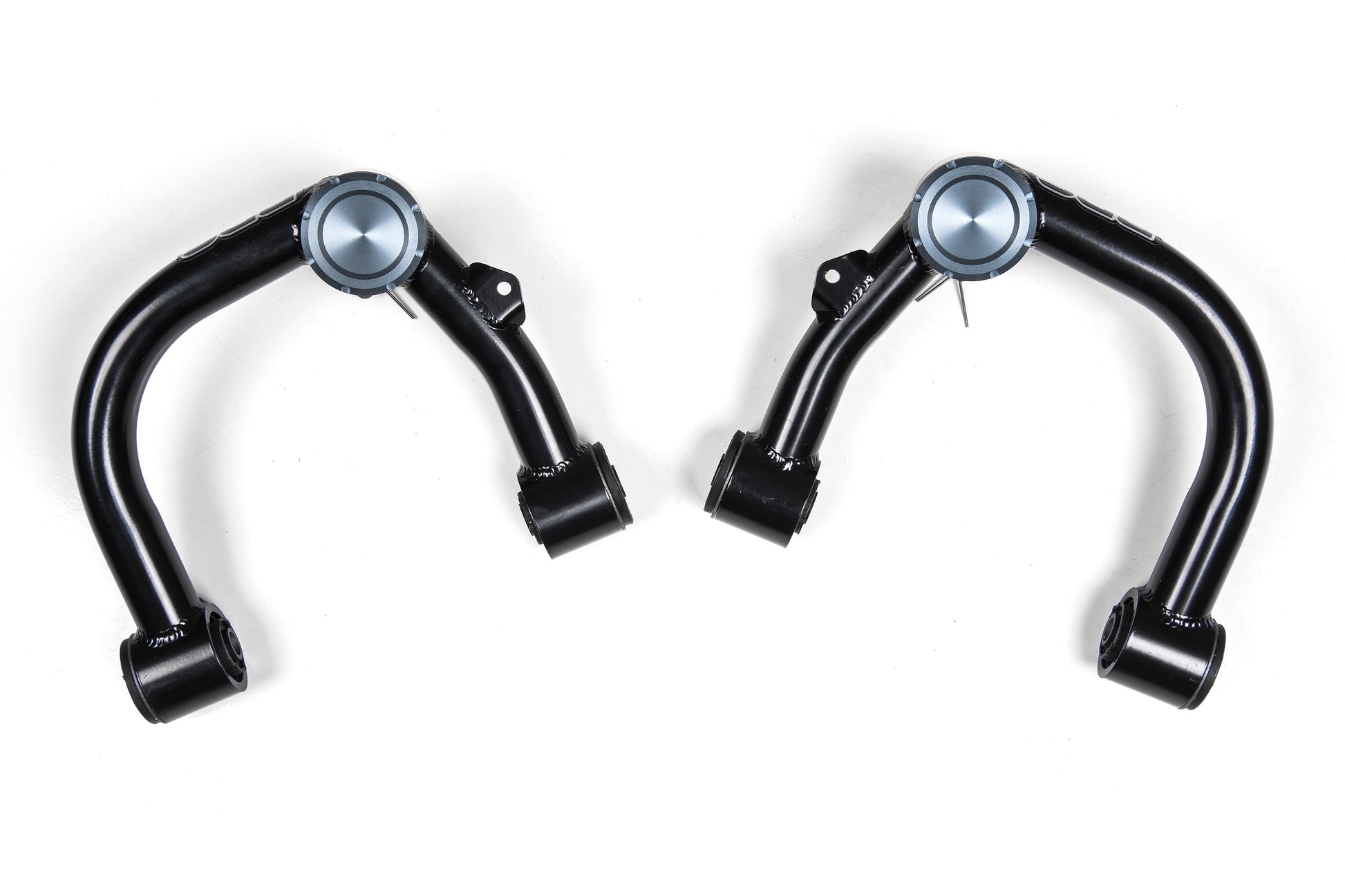 These UCAs can be used with BDS lift kits and other lift and leveling kits on the market. The frame mounting ends feature durometer-specific rubber bushings and premium quality ball joints for smooth, quiet operation, and superior durability compared to arms featuring uniballs, poly bushings or heims.