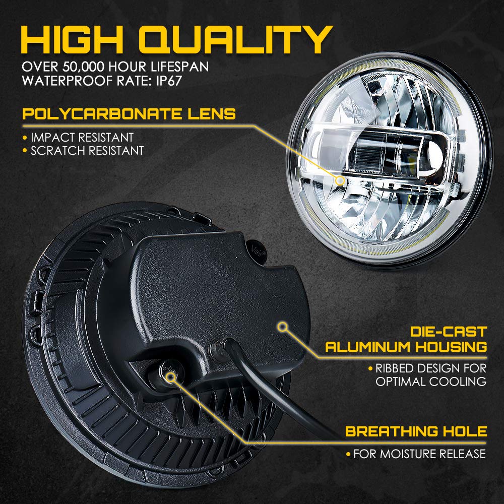 One Pair of Xprite 7" Envision Series 60W LED Headlights With Halo DRL For 1997-2018 Jeep Wrangler