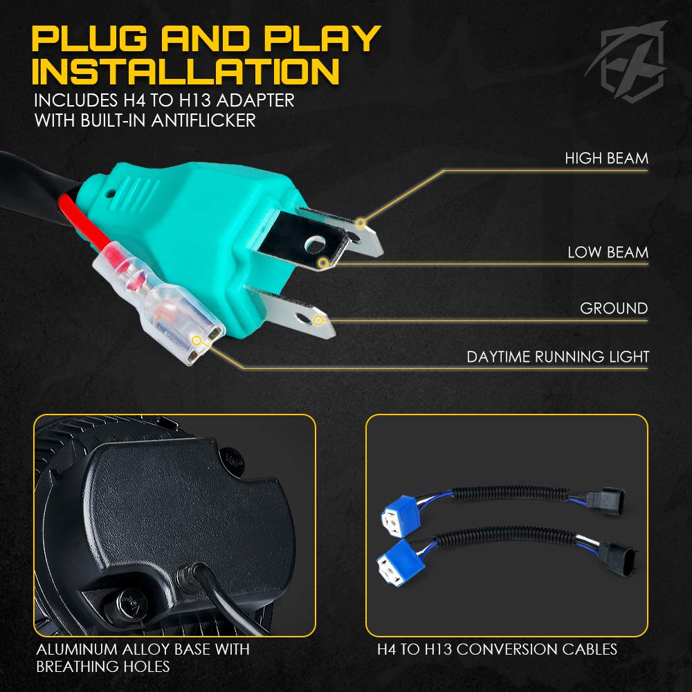 - Plug & Play, LED Ballast, H4/H13 Adapter Included