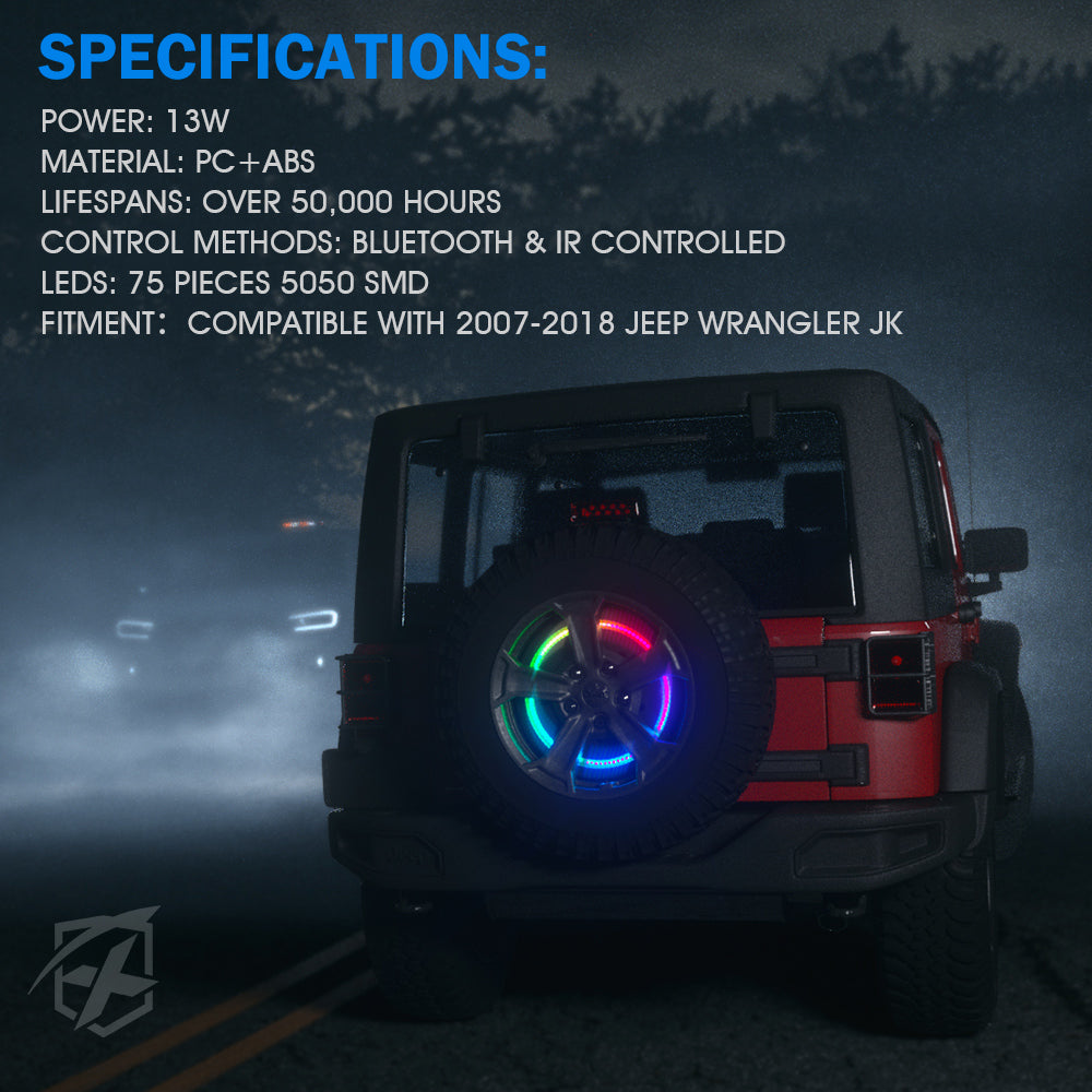 1 x Xprite Spare Tire RGB LED Brake Light with Remote Control & Bluetooth For 2007-2018 Jeep Wrangler JK